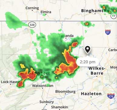 Posting on Weather.com Above) indicated that heavy thunderstorms might develop over Bradford and western Wyoming counties between 2 and 3 pm.