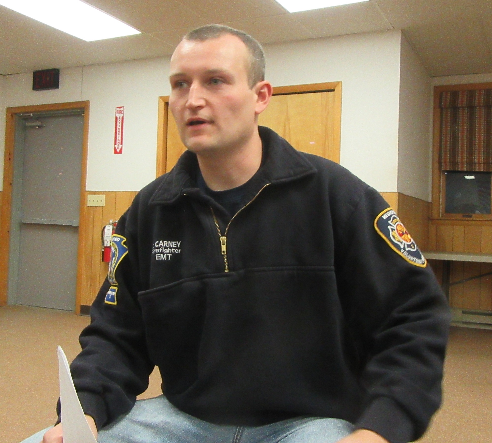 “No company is strictly volunteer anymore,” Carney (above) explained. “We’re trying to transition as fast as we can to a paid staff.” Carney and Prevost calculated that they would need at least $25,000 per year to add 24 hours per week to the payroll. They have embarked on a campaign to petition each municipality in their service area for at least $3,000 toward their goal.