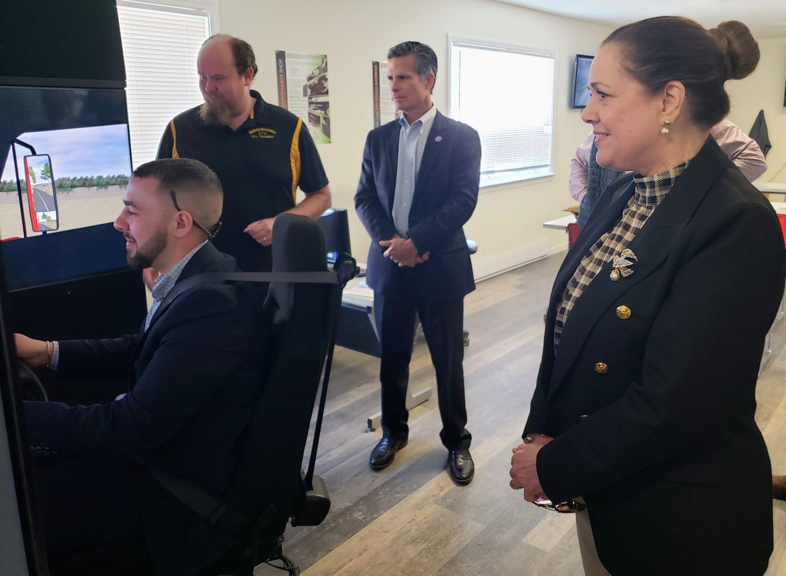 Sen. Lisa Baker (above, second from right) and Congressman Dan Meuser (center) with SCCTC welding instructors and (below) at SCCTC’s CDL Training Center.