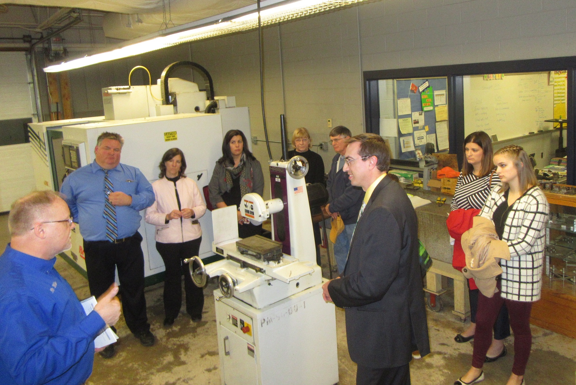 NTCC instructor Tom Milks (left) fields questions from Wyalusing School Board members and administrators about the school’s Machine Tool Technologies program.