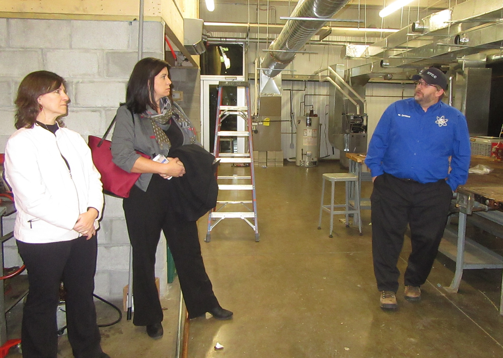 Mechanical Trades instructor Patrick Davidson (right) discusses NTCC’s HVAC program with Wyalusing curriculum and instruction coordinator Deana Patson (center) and elementary school principal Deneen Lantz.