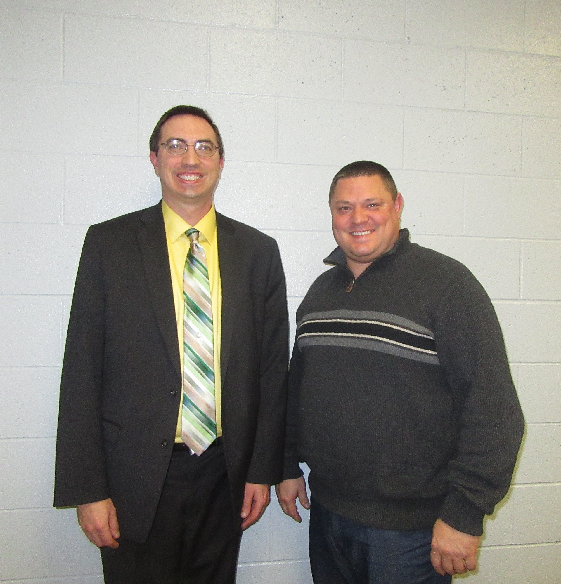 NTCC director Gary Martell (top, back, center) shows Wyalusing school board members and administrators the cosmetology lab as part of a tour of NTCC on Monday evening. Chad Salsman (above, left) and Matt Muench were reelected by the Wyalusing Area School Board during their monthly meeting as president and vice president, respectively.