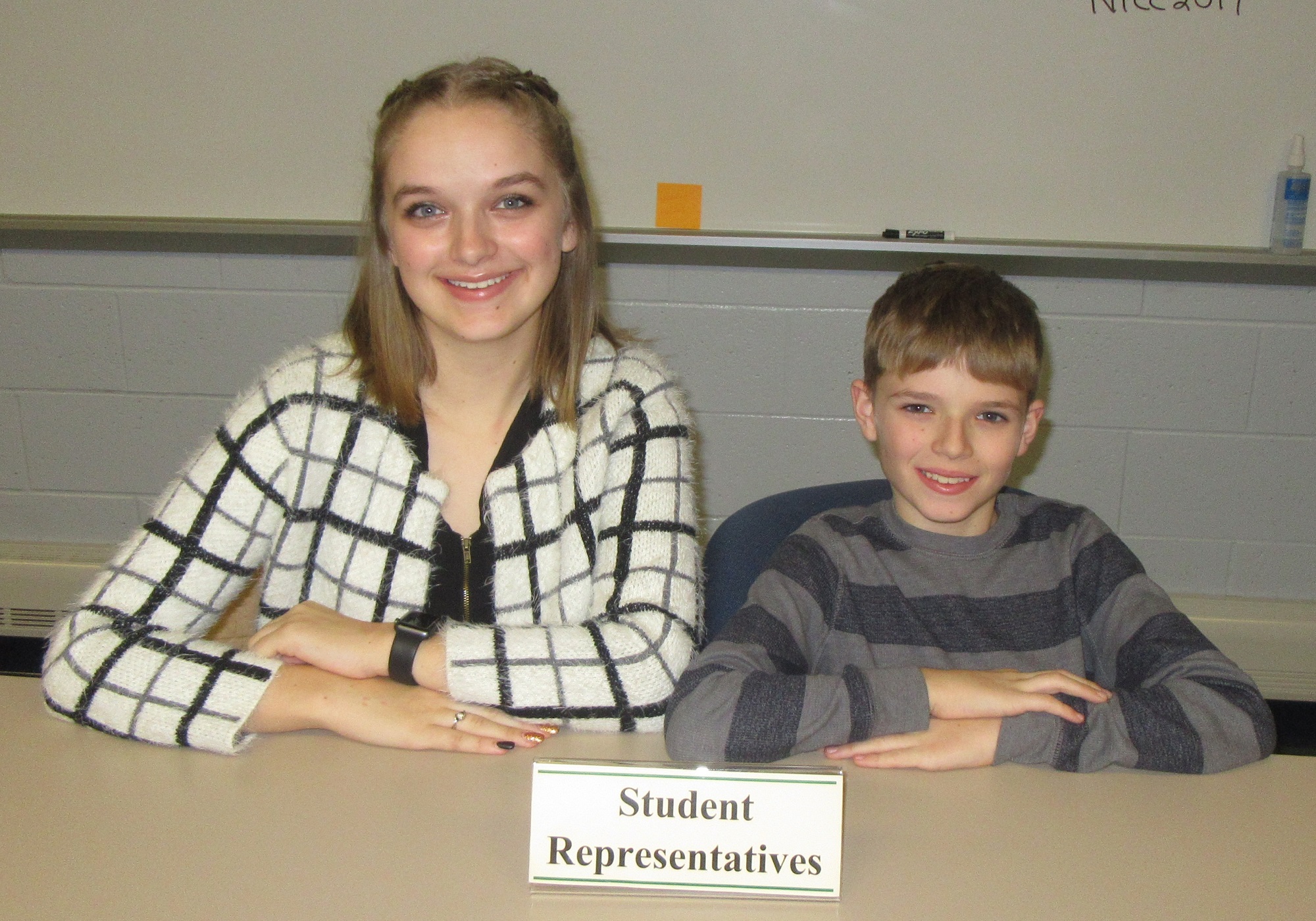 Siblings Mackenzie (left) and Trennan Tewskbury enjoyed an uncommon opportunity to serve together as student representatives for the Dec. 3 meeting.