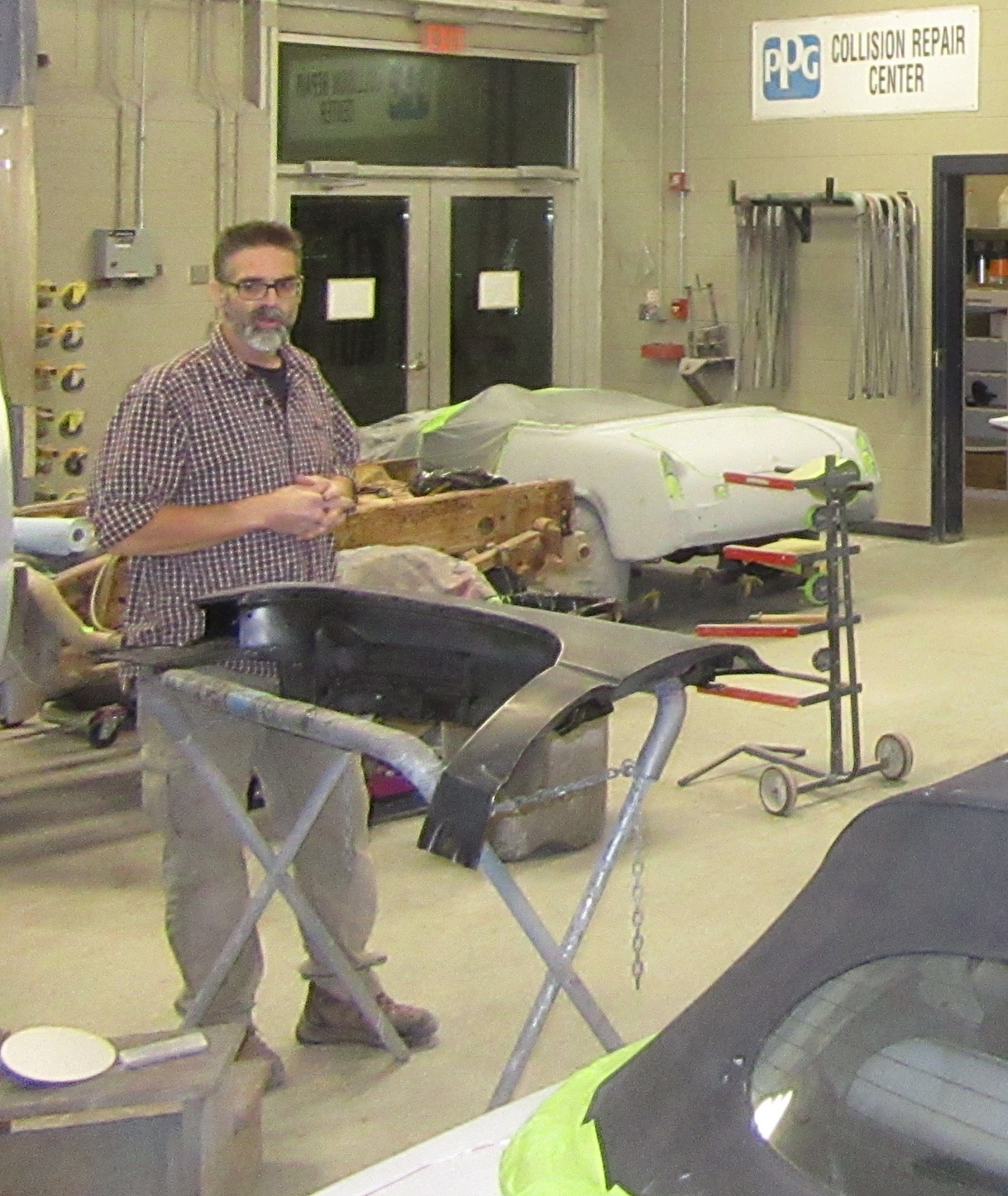 Automotive Collision and Repair Technology instructor Dion Sullivan provides details on a number of student projects around him that are coming to fruition simultaneously.
