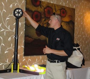 BX3 Supply and Rental was credited for coordinating the purchase of this year’s gift packages, which included portable LED scene lights, adjustable break-away vests, extrication gloves, and flame resistant pullover hoods. BX3 vice president of operations Phil McKeon (below) related that, as his company continues to work with the vendors that supply emergency equipment and apparel, he is able to get better deals, stretching the $55,000 budget allotted to him for both counties a bit farther this year.
