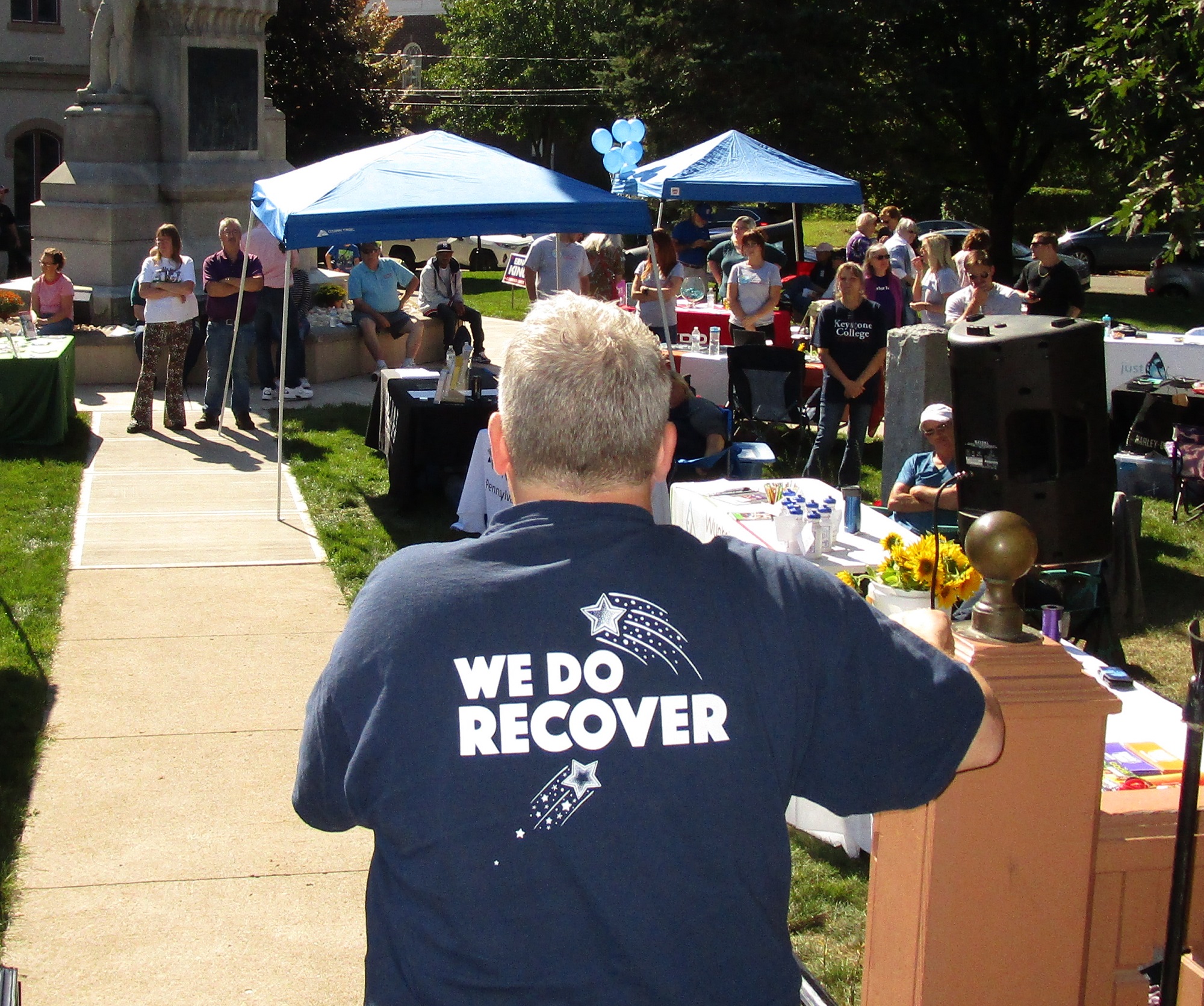 The day was sunny, and spirits were high, as county officials and recovery leaders were followed on the steps of the gazebo by several local residents in various stages of recovery who shared their intimate stories. While each tale was very different, the relevance of the overall themes was undeniable.