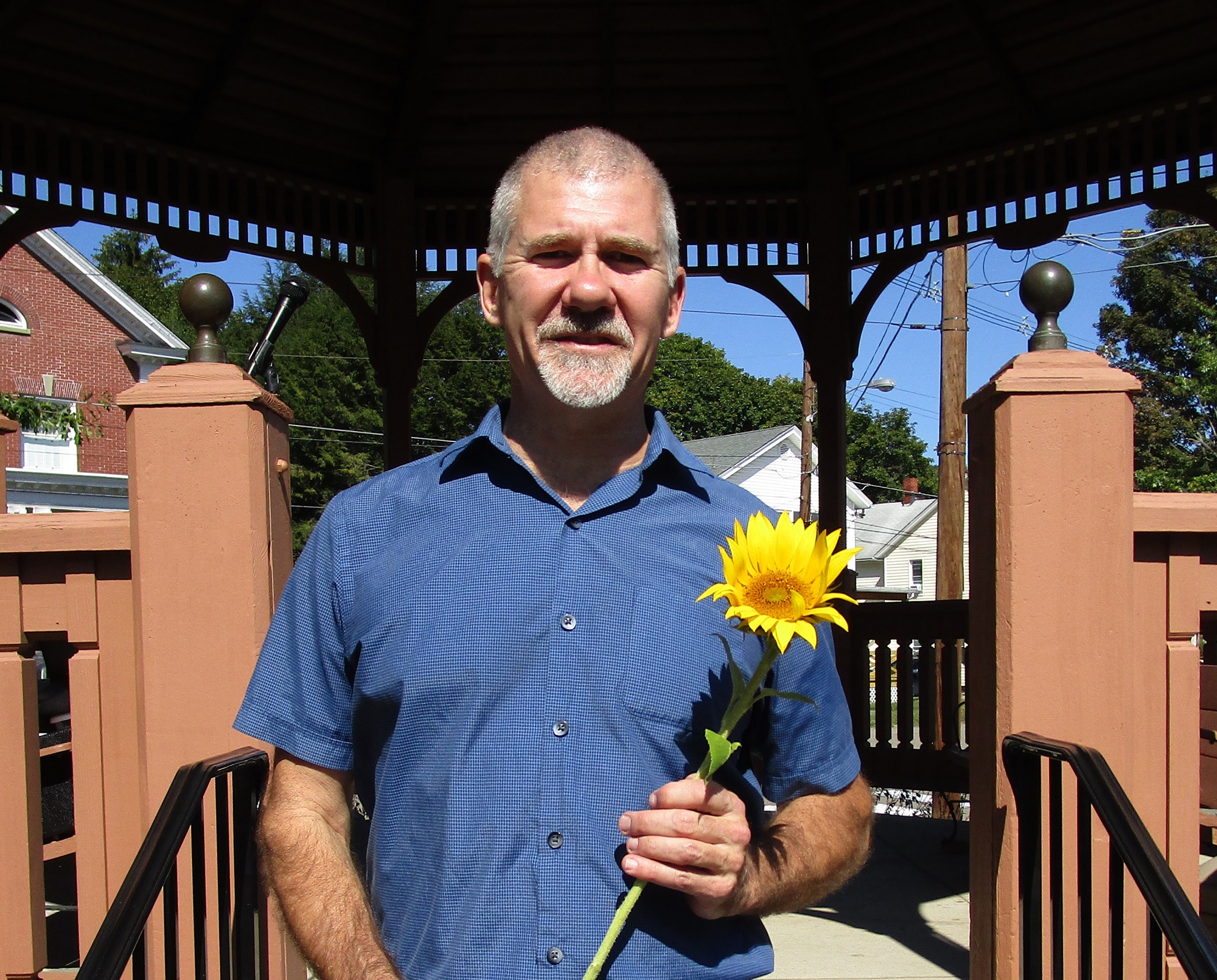 Rick Hiduk, holding one of the many sunflowers presented to participants, provided sound and music for the celebration.