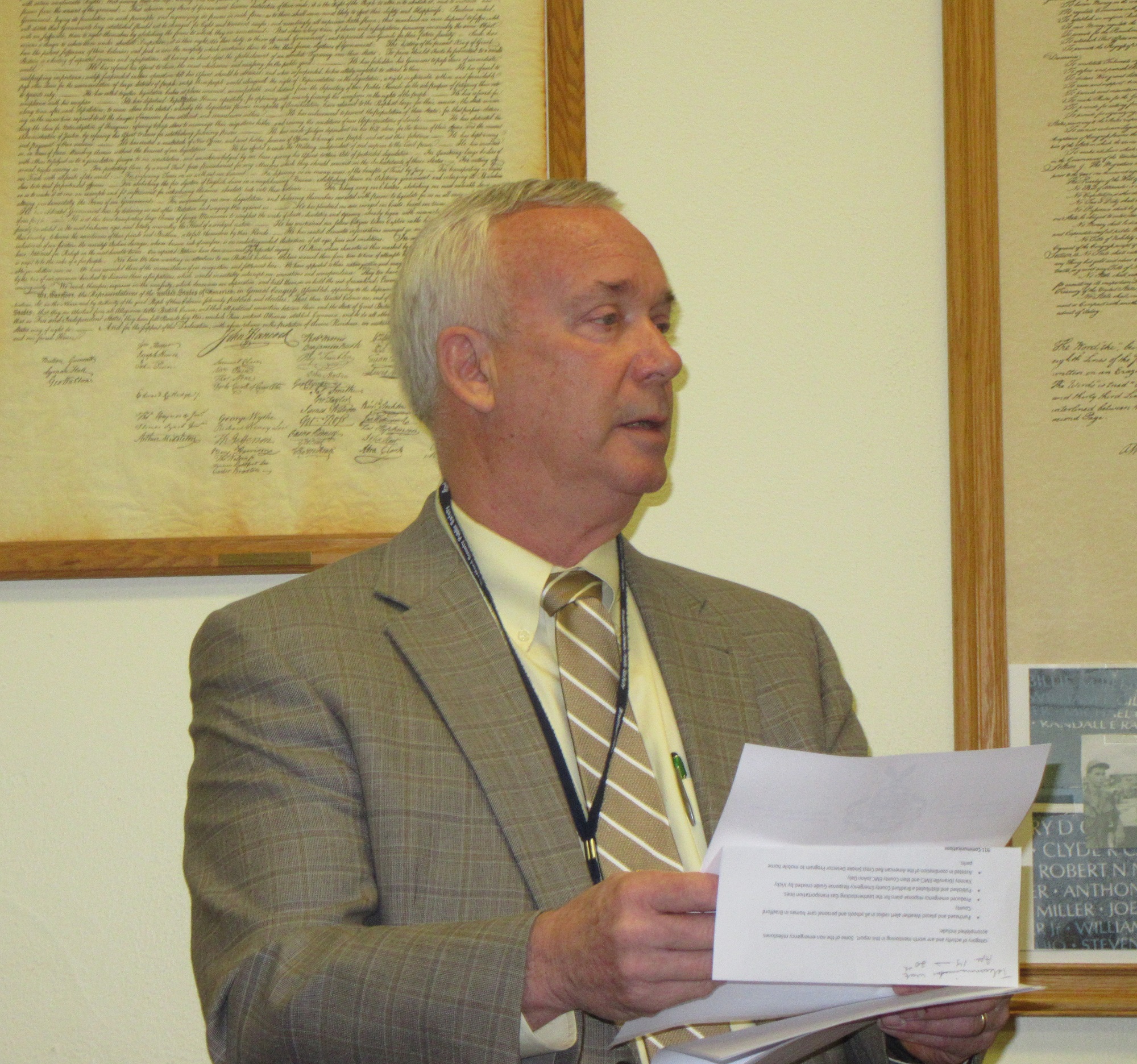 The Bradford County Commissioners proclaimed April 8 to 14 as Telecommunicators Week, and Robert Barnes (above) visited the courthouse in Towanda to provide a recap and an update on the county’s 911 Center.