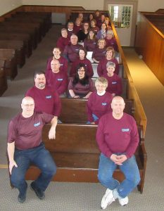 Wyoming County employees who took part in the annual CASUAL Day promotion at the courthouse in Tunkhannock to increase awareness of colon cancer in the region on March 28 included (front, left to back) Brian Ball, Jerry Dymond, commissioners Tom Henry, Judy Mead, and Michael Stabinsky, Jennifer Bose, Ginger Cragle, Sharon Robinson, Sharon Kuback, Michelle Rushworth, Bill Gaylord, Robin Evans, Patti Mead, Lori Gaydos, Georgette Smith, Linda Stacknick, Terilyn Wickizer, Jessica Ellis, Michelle Krieg, Lori Mislevy, Aaron Doty, Mike Donahue, Lori Mislevy, Kelley Cosner, and Florence Kellett.