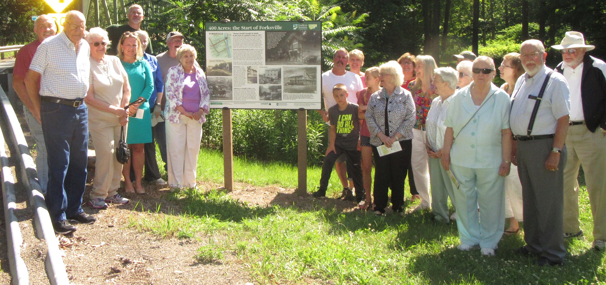Residents with deep roots in the Forksville area met representatives of the Endless Mountains Heritage Region (EMHR) and a handful of elected officials at the intersection of routes 87 and 154 on Thursday morning. They were there to celebrate the installation of an interpretive panel depicting the early history of the Sullivan County borough situated at the confluence of the two branches of the Loyalsock Creek.
