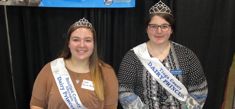 Pennsylvania Dairy Promotion is a big aspect of the Pennsylvania Farm Show and provides many opportunities for representatives of neighboring counties to work together to support the cause. Among the dairy representatives in Harrisburg this week were Bradford County Alternate Dairy Princess Taylor Bride-Marshall (above, left) of Towanda and Tioga County Dairy Princess Audrey Starkweather, daughter of Jim and Karen Starkweather of Middelbury Center. Taylor is the daughter of Jim Bride and Donna Marshall. (Read about PA Dairy promotion in Susquehanna County here: http://www.endlessmtnlifestyles.com/?p=15433 )