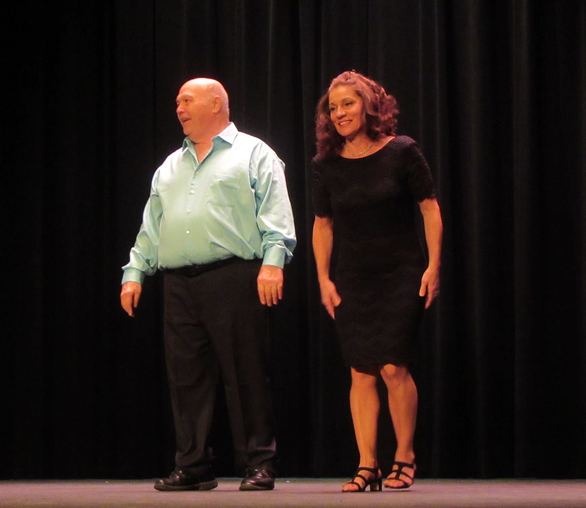 Ron Whipple and Theresa Lee Caines catch their breath after an exhilarating swing disco routine.