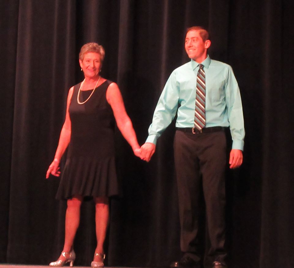 Dr. Virginia Fennelly (top, center) thanks the dancers, emcees, and other involved in the first Dancing with the Stars of NEPA fundraiser for Holistic Health for Everyone, which featured professional dance instructors like Vince Brust (above, left) paired with non-professional dancers like Jennie Petrone, a licensed athletic trainer and practitioner of Oriental Medicine. (More photos at end of story.)