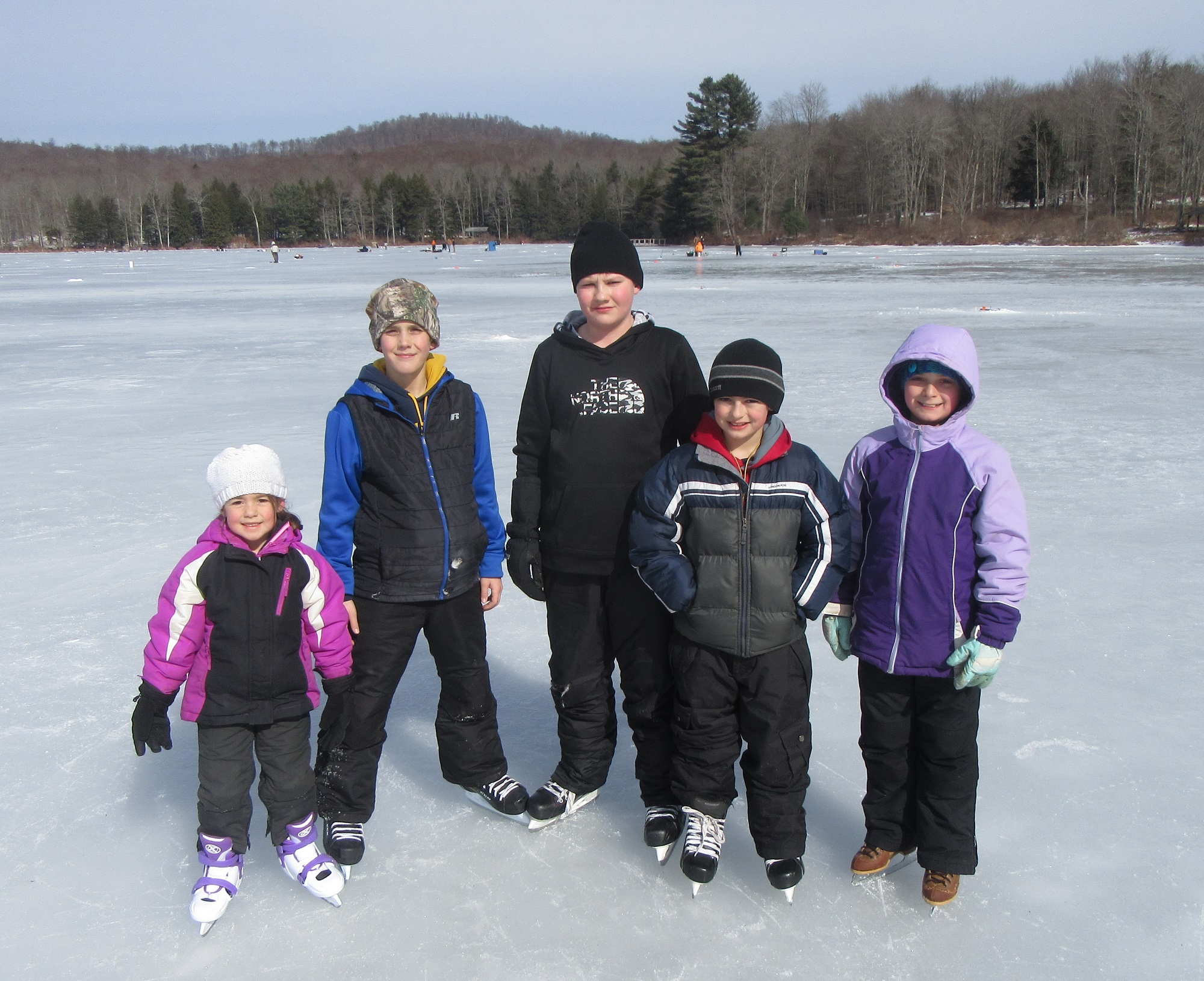 Laced up and ready to go skating are (above, from left) Juliana Price, Matthias Albert, Zane Pedro, Layne Price, and Emmalynn White. The youths said they are looking forward to be old enough to participate in the Polar Bear Plunge.