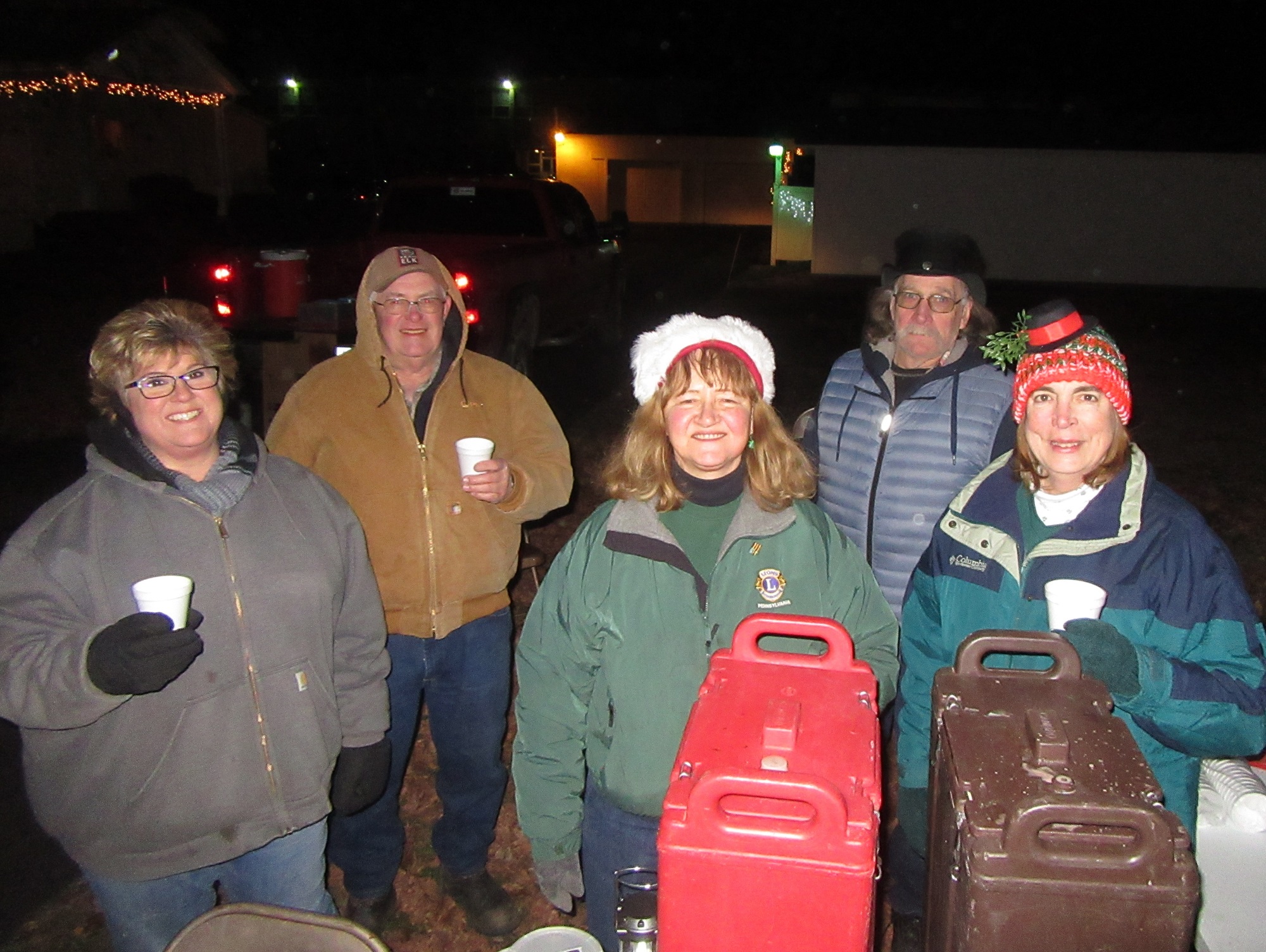 Serving hot chocolate on a chilly night were Tunkhannock Lions Club members (from left) Lisa Kirchner, Jim Luce, Josie Sands, Steve Patton, and Judy Gingher.
