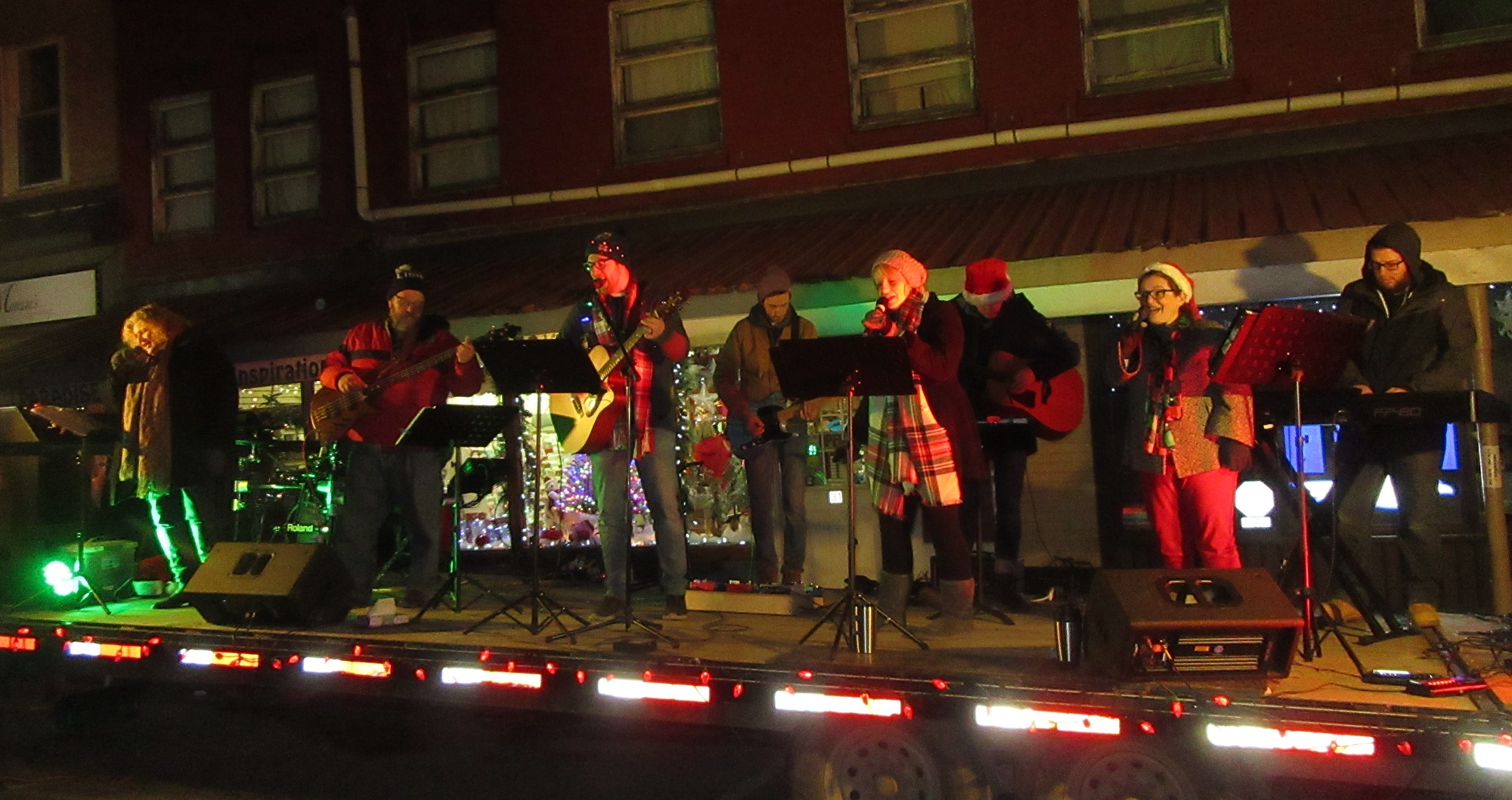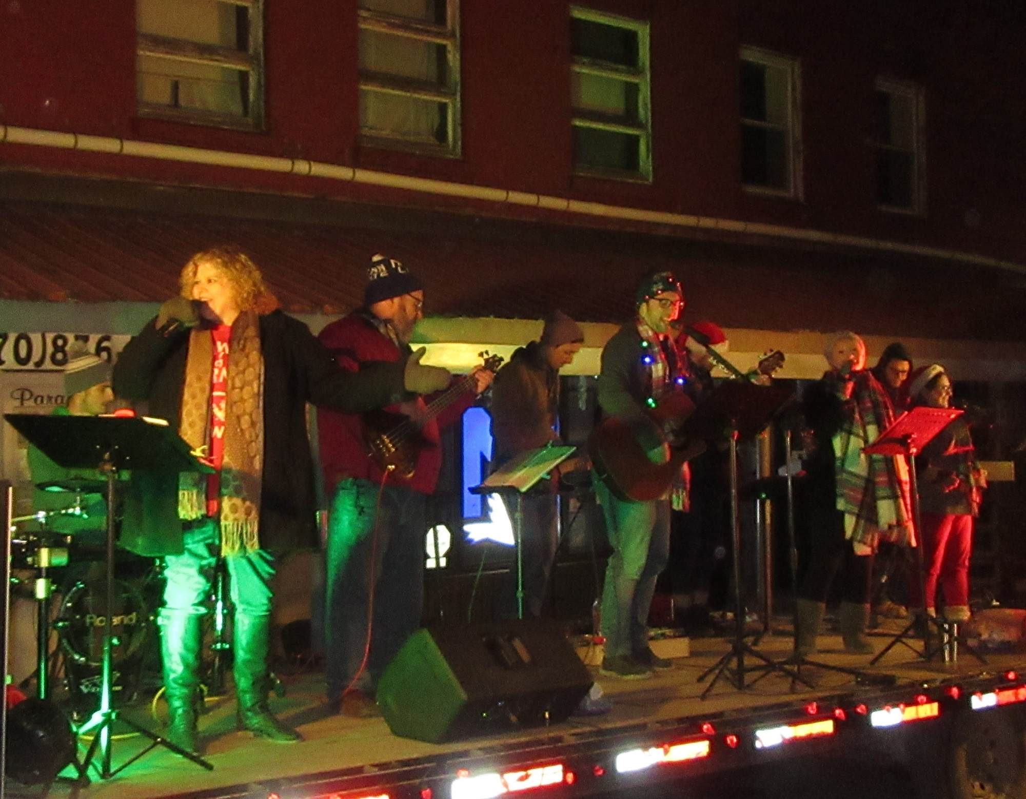 The praise band from Bridgewater Baptist Church rocked out Christmas tunes on Tioga Street.