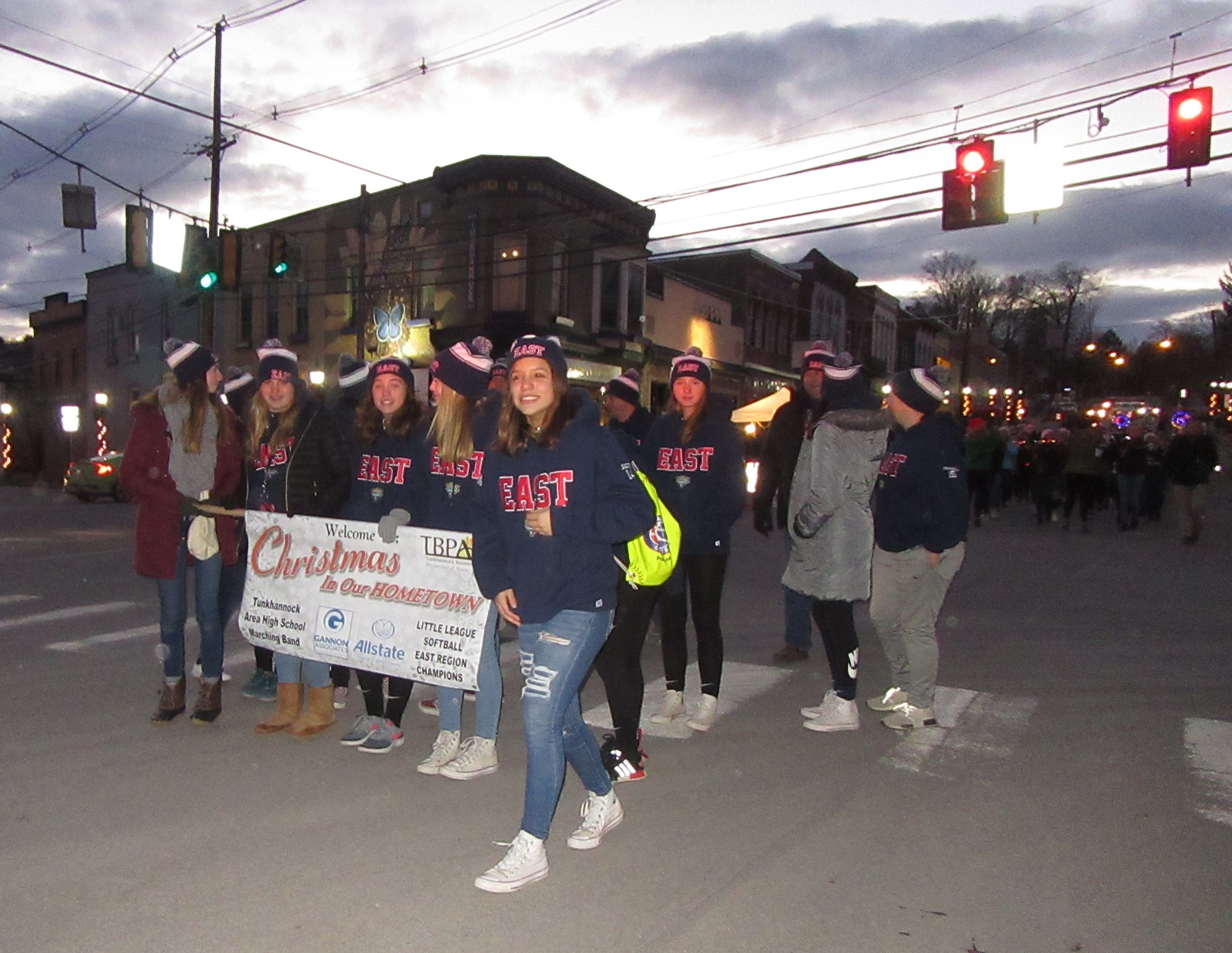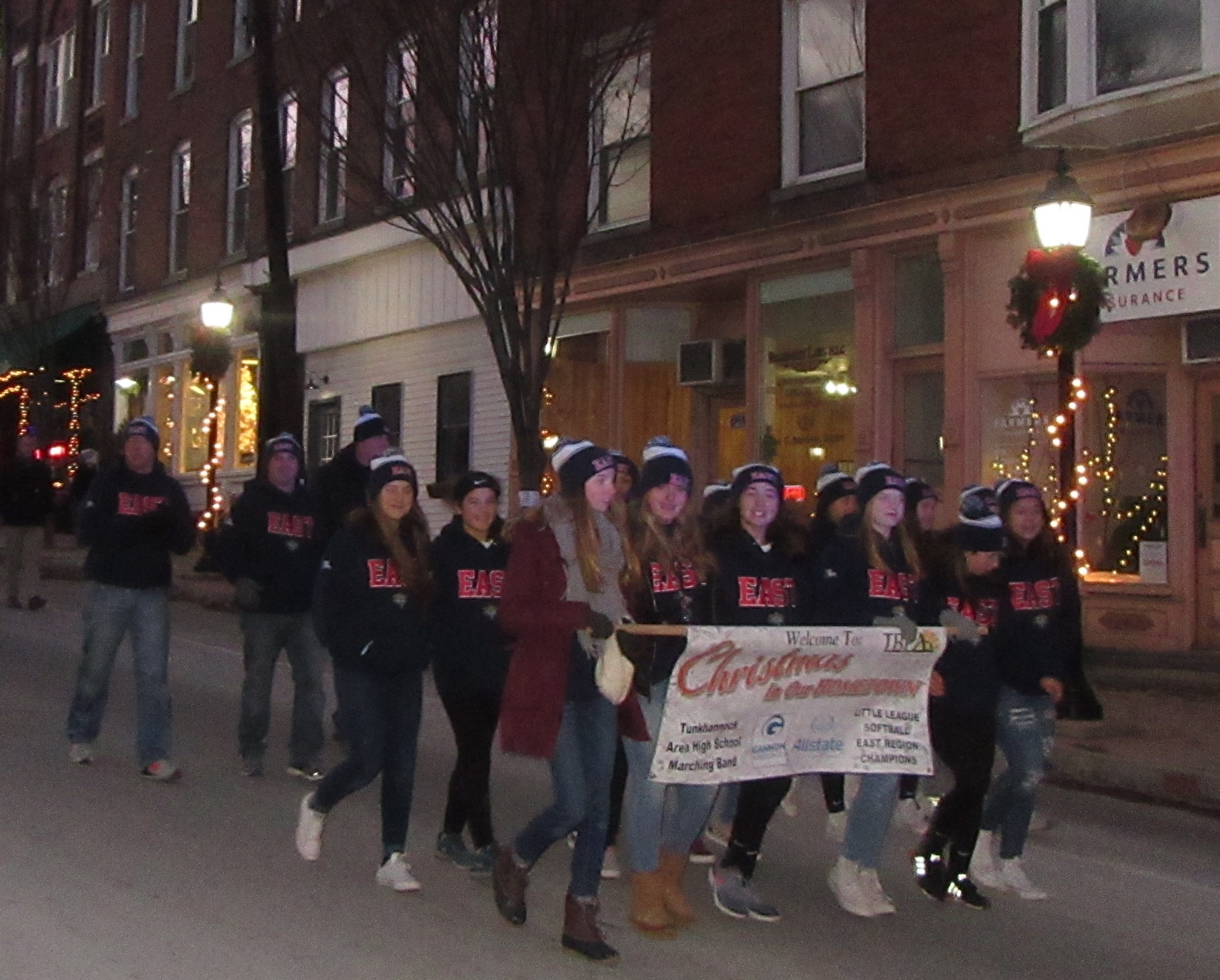 The Santa parade was led by the Tunkhannock Girls Little League East Coast champs.