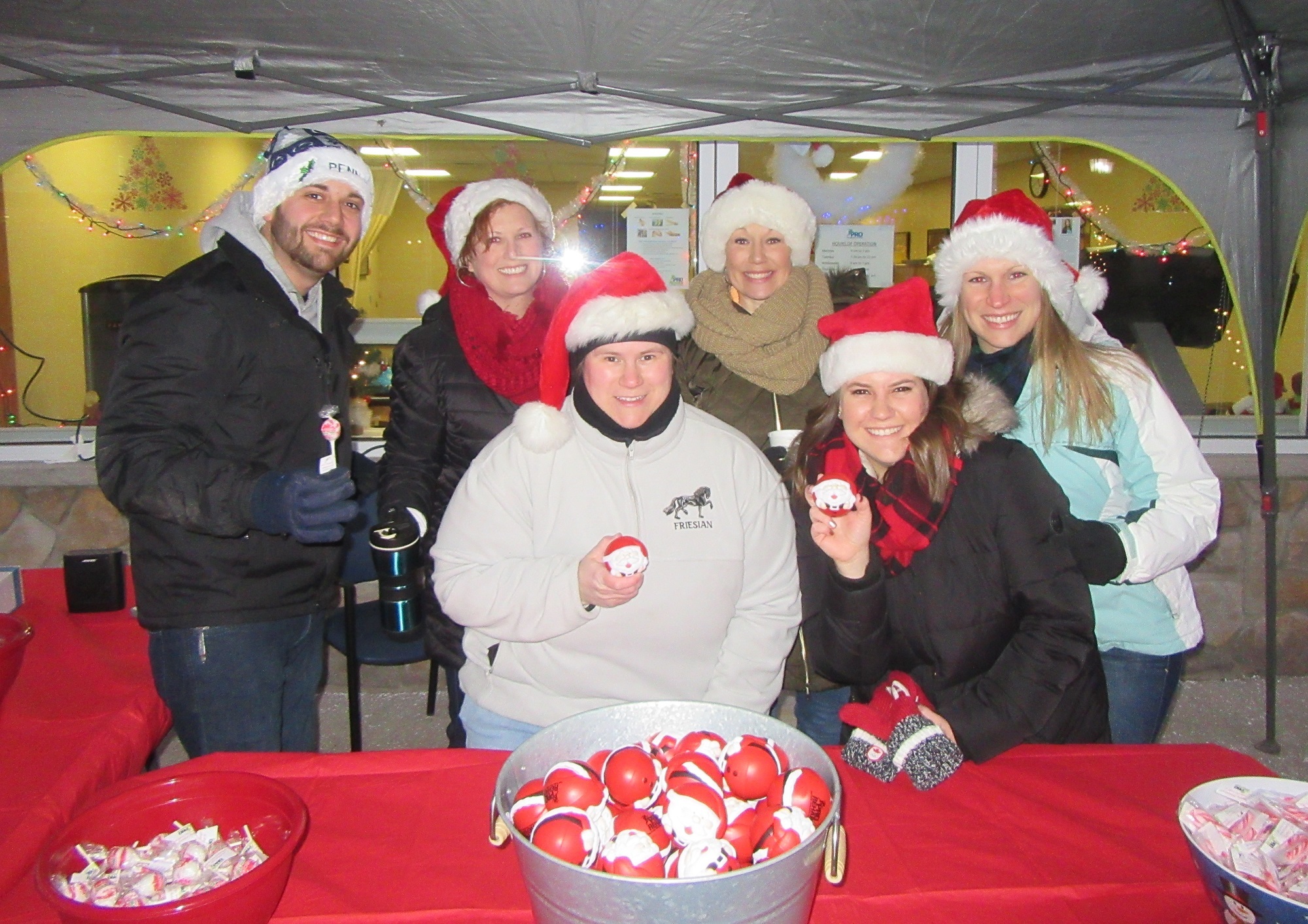 Pro Rehab employees (from left) Andrew Adams, Susan Dwyer, Cynthia Brownell, Amanda Brown, Alexa Plevyack and Colleen Howard distributed Santa stress balls to Christmas in Our Hometown patrons.