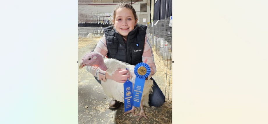 According to Penn State Extension 4-H educator Sandy Peterman, Adalyn was the first 4-H’er from Sullivan County in many years to take a market animal to the Farm Show. Fellow 4-H member Lillian Broschart has taken chickens to the Farm Show for a judging contest when they were permitted, but she takes them back home. Adalyn would like to show chickens, but they have not been allowed at the Farm Show for several years now due to the prevalence of avian influenza. That’s why she opted for a turkey instead.