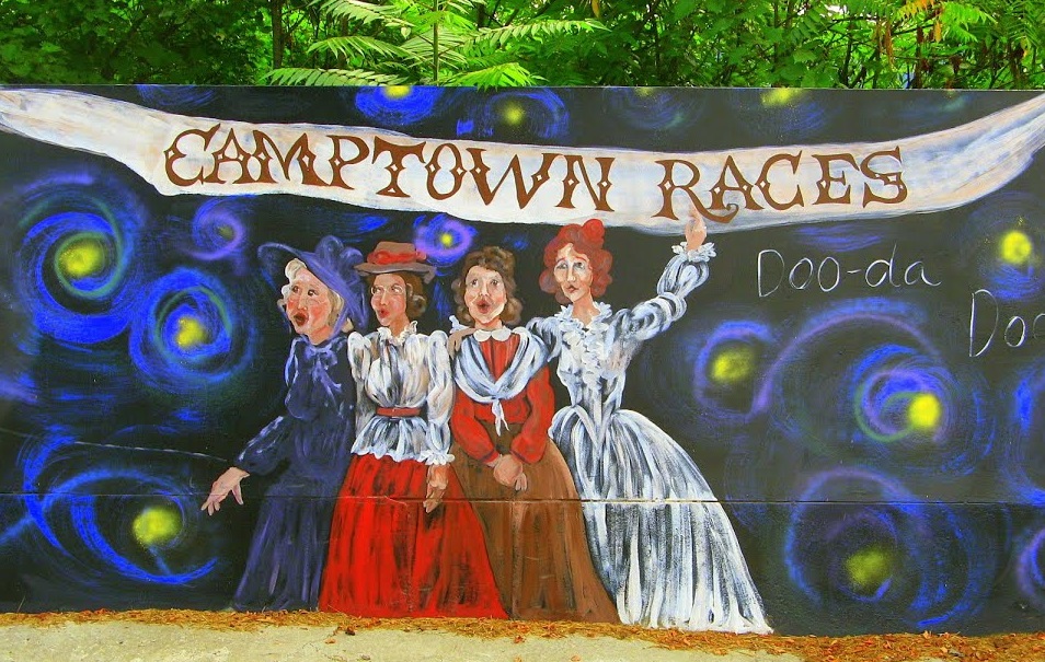 The 400-ft Steven Foster Mural (below), painted by the late Bonnie Bell Hilfiger in 2010, is a tribute to Steven Foster. Foster who was called the Father of American Music, wrote several well- known folk songs including “Camptown Races,” “Oh, Susanna,” and “My Old Kentucky home”. He was born and attended school in Bradford County in his younger years.