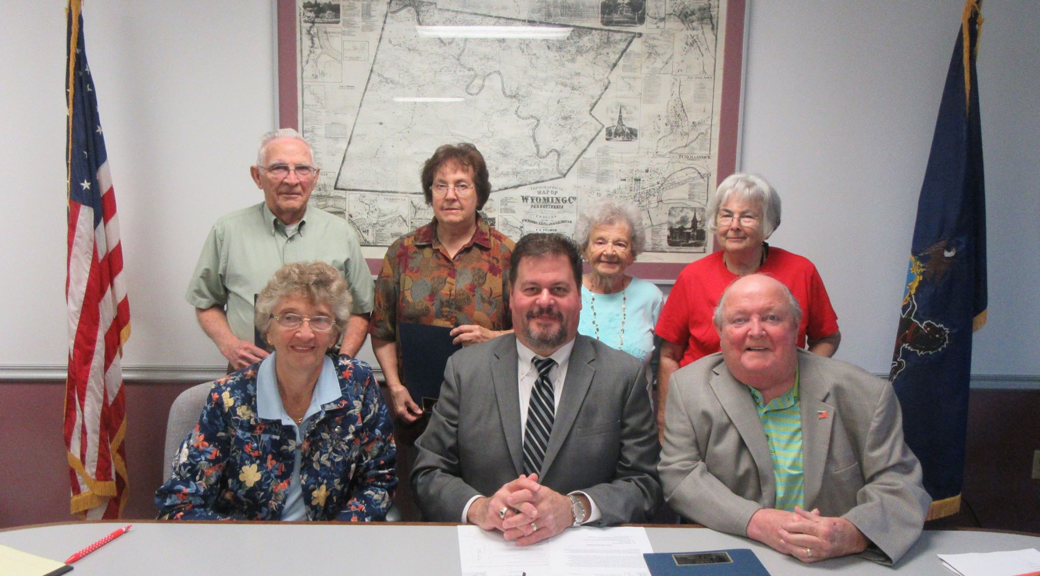 Four of nine new Wyoming County members of the Pennsylvania Voters Hall of Fame were on hand Tuesday to receive their citations. Eugene Adams, Ralph Anderson, Nancy Bennett, Nellie Benninger, Mary Dodge, Shirley Patton, Sheryl Phillips, William Stand, and Ann Marie Willis have each voted consecutively in the past 50 November elections. Florence Ball, director of voter registration and elections, was on hand for the celebration.