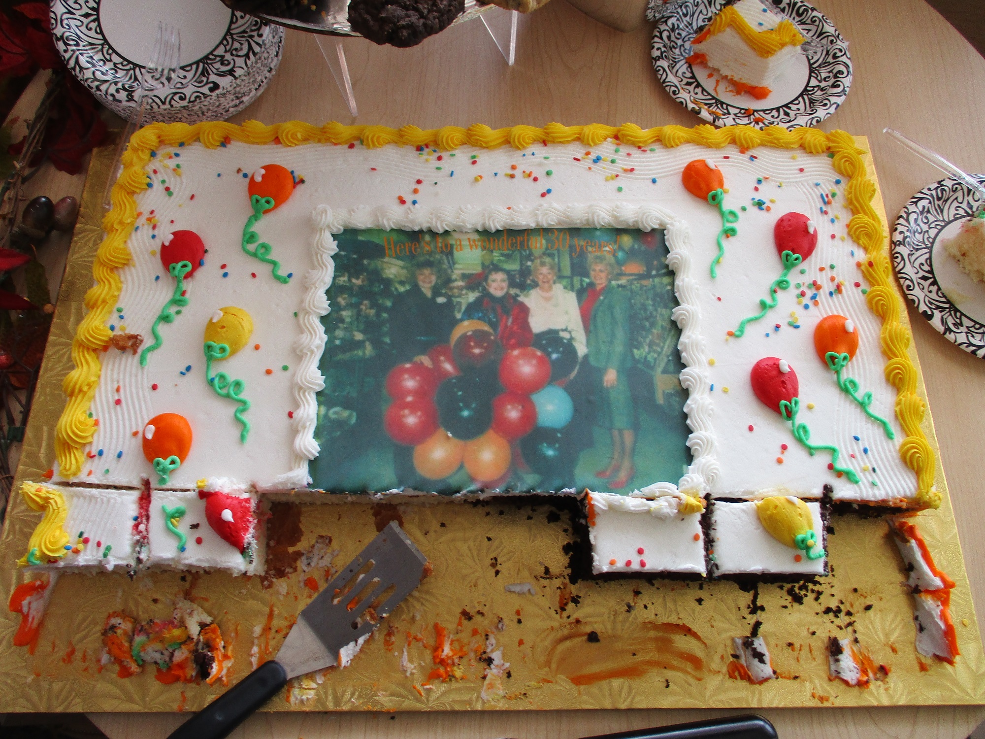 A photo on the cake at J.R’s Hallmark on Saturday depicted the grand opening of the story in 1998.