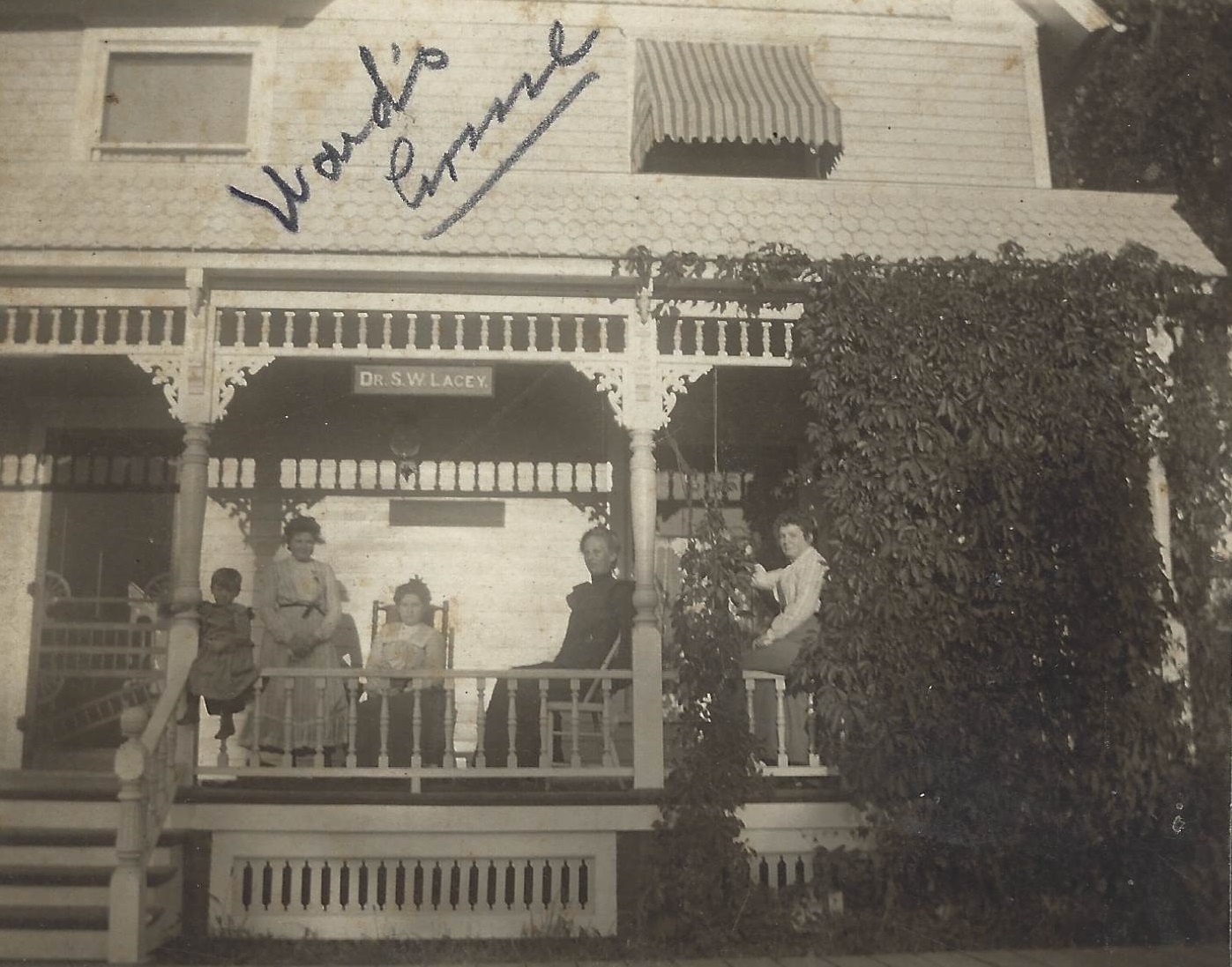 The ladies of the Ward Lacey home are reposed on the front porch of the house, in which he also had a doctor’s office.