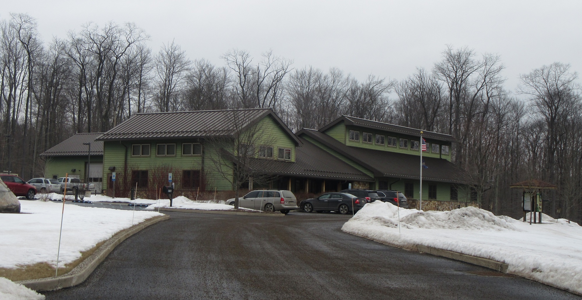 While highs in the 40s were forecast across much of the region today and bare ground was rapidly making a comeback, the ground remained snow-covered at the Loyalsock State Forest District Office west of Dushore in Sullivan County at noon today with a temperature of 34 degrees.