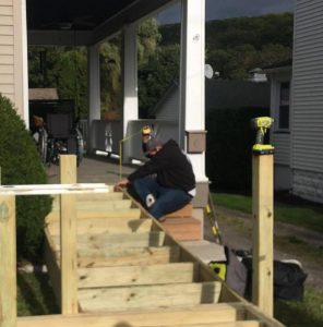 Connor also got helping on construction day from his father, Robert Roberts, and his girlfriend’s father, Warren Clark. Connor said that the toughest part of the job was getting all of the materials assembled and to the job site. Otherwise, he felt that the proposed ramp transferred pretty smoothly from blueprint to finished product.