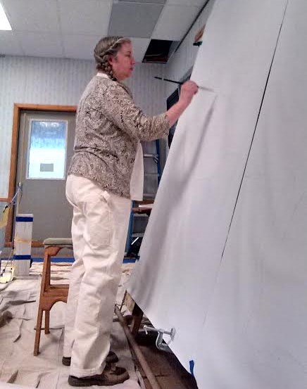 Sullivan County artist Karen Black (above) begins working on a new mural that will adorn the showcase in the Sullivan County Courthouse at Laporte. A chipmunk (top) is just one of many details that visitors to the courthouse will see as part of the finished product, which should be unveiled in late June.