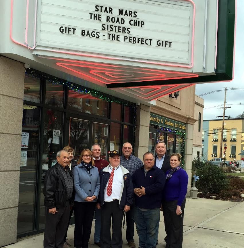 According to EMHR executive director Annette Schultz, who was at the theater on Dec. 18 for the dedication of the refurbished marquee, “Not only is the Dietrich Theater a historic landmark, but it is also a venue for programs featuring local history, traditional crafts and our Endless Mountains natural areas, thanks to the Wyoming County Cultural Center’s programming. We are proud to support the Center’s heritage stewardship with EMHR funding from the Department of Conservation and Natural Resources.” Along with the lighting improvement, additional improvements including cleaning and repainting of the façade have been accomplished by Dietrich Theater maintenance manager and marquee project manager Jim Hudock, and Dietrich volunteer Jim Rosengrant, who are always ready to get the job done.