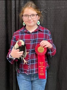 At just 9 years old, Sullivan County 4-H member Lillian Broschart has already done a lot with the club, including archery, sewing backpacks and blankets as expressive arts, and showing a bull named Rusty at the Sullivan County Fair in 2020. She also had a successful outing at the Fair in 2021 showing poultry, getting a first place in Showmanship with a rooster named Harry and Best of Breed with a hen named Luna.