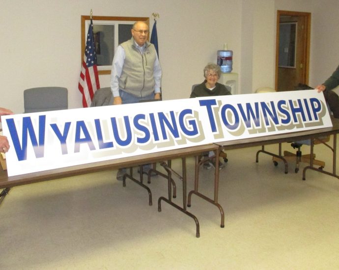 Wyalusing Township supervisors Art Allen (left) and Lanny Stethers (right) revealed new signs made by Parrot Graphics that will soon adorn the front of the township’s office building on Route 6. Supervisor Marvin Meteer and secretary Maxine Meteer are seated in the background. Photo and story by Rick Hiduk (originallyContinue Reading