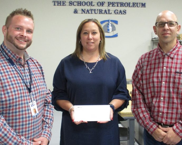 Women Helping Women Executive Director, Karen Hubbard (center) presents a check for $1,000 to Lackawanna College Tunkhannock Center director Brad Reid (left) and School of Petroleum and Natural Gas instructor Jeremy Yadlosky. Donated to WISE, Women in Shale Energy, which is a student group within The School of PNG atContinue Reading
