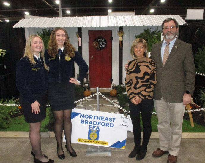 Northeast Bradford FFA members (from left) Brooke Calkins and Anna Towner were greeted at the Pennsylvania Farm Show on Jan. 8 by Kay and Daryl Miller. The landscape display they designed was inspired by Shores Sisters Farm Market in Wysox, where the girls enjoy shopping. Kay Miller is the motherContinue Reading