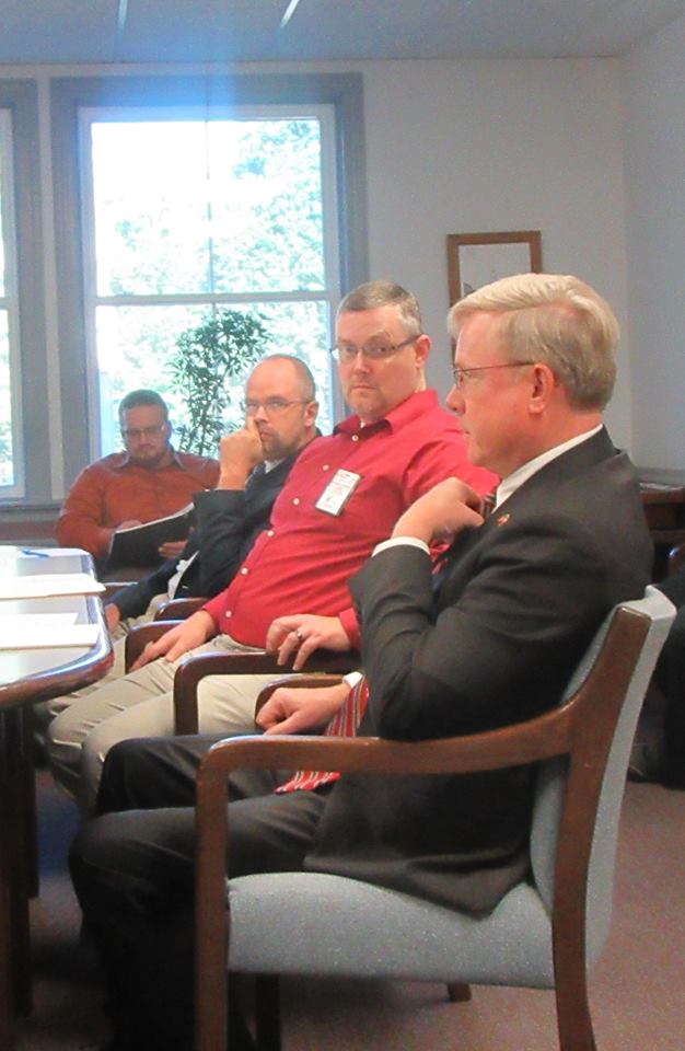 Wyoming County Prison Board members, including (from left) Atty. Steve Franko, DA Jeff Mitchell, Warden Ken Repsher, and President Judge Russell Shurtleff, met in the commissioners office in Tunkhannock on Sept. 6.