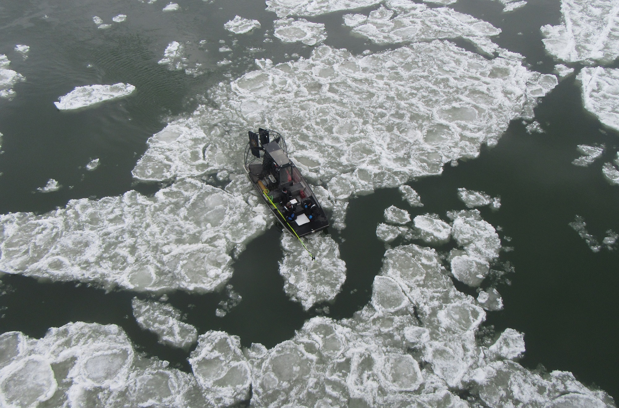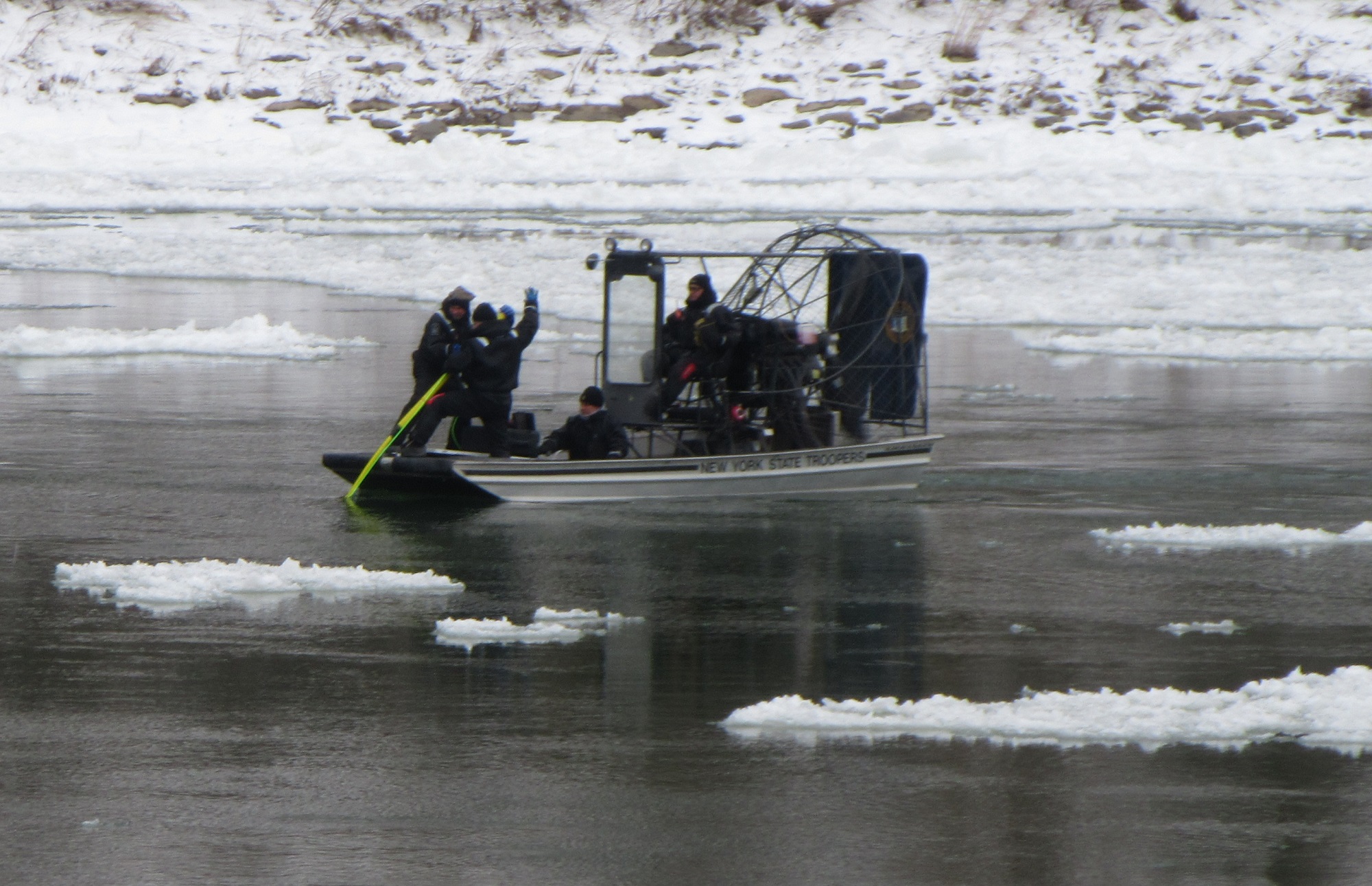 The New York State Police sent a specialized unit to West Falls on Wednesday that used imaging equipment to try to locate the body of Haley Lorenzen. The flat-bottomed airboats were able to ride atop the massive ice chunks that are flowing quickly down the river.
