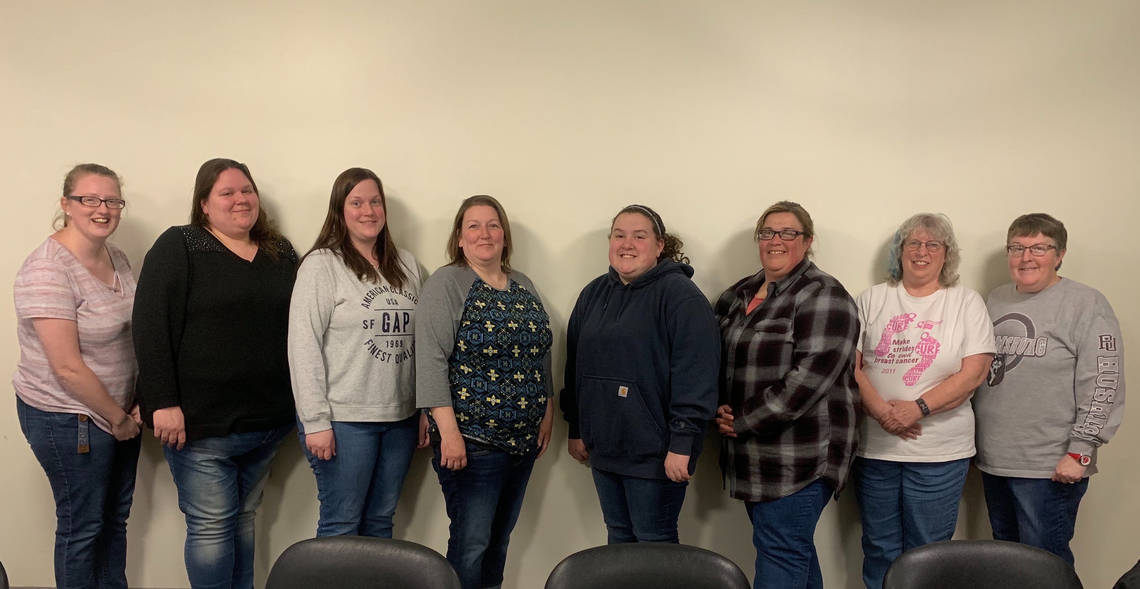 Participants in a recent meeting of the committee planning the Endless Mountains Relay for Life event included (top, from left) Samantha Barnhart and Jennifer Strickland of Susquehanna County, Tiffany Evans, Kristy Fittings, Morgan Robinson and Sara Robinson of Wyoming County, and Raylean Cox and Louise Hicks of Susquehanna County. Organizers of the Crush Cancer Color 5K Run, which will be held the same day, include sisters Emily Hoffman (above, left) and Sarah Hoffman.
