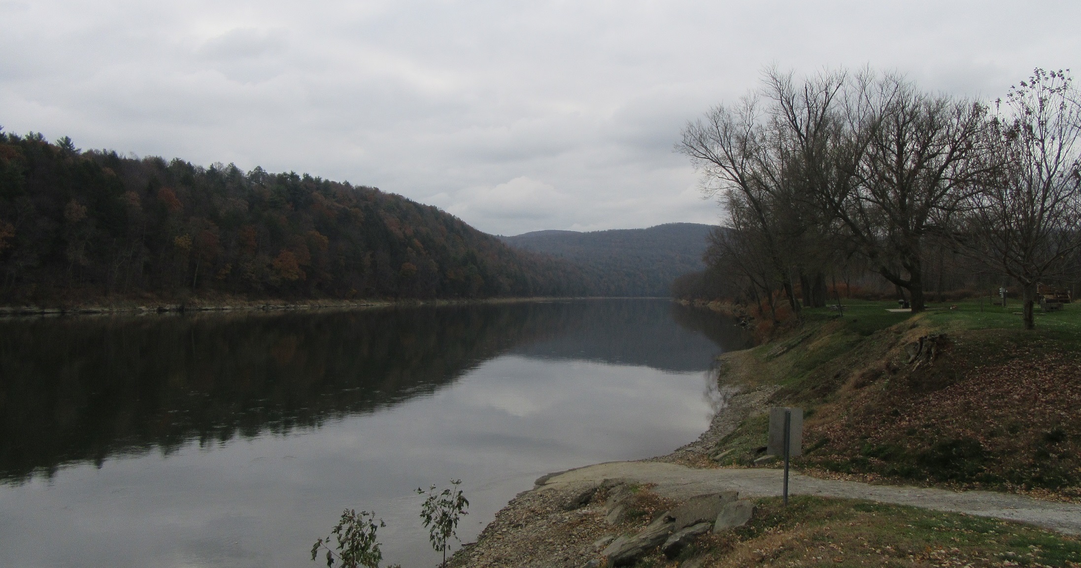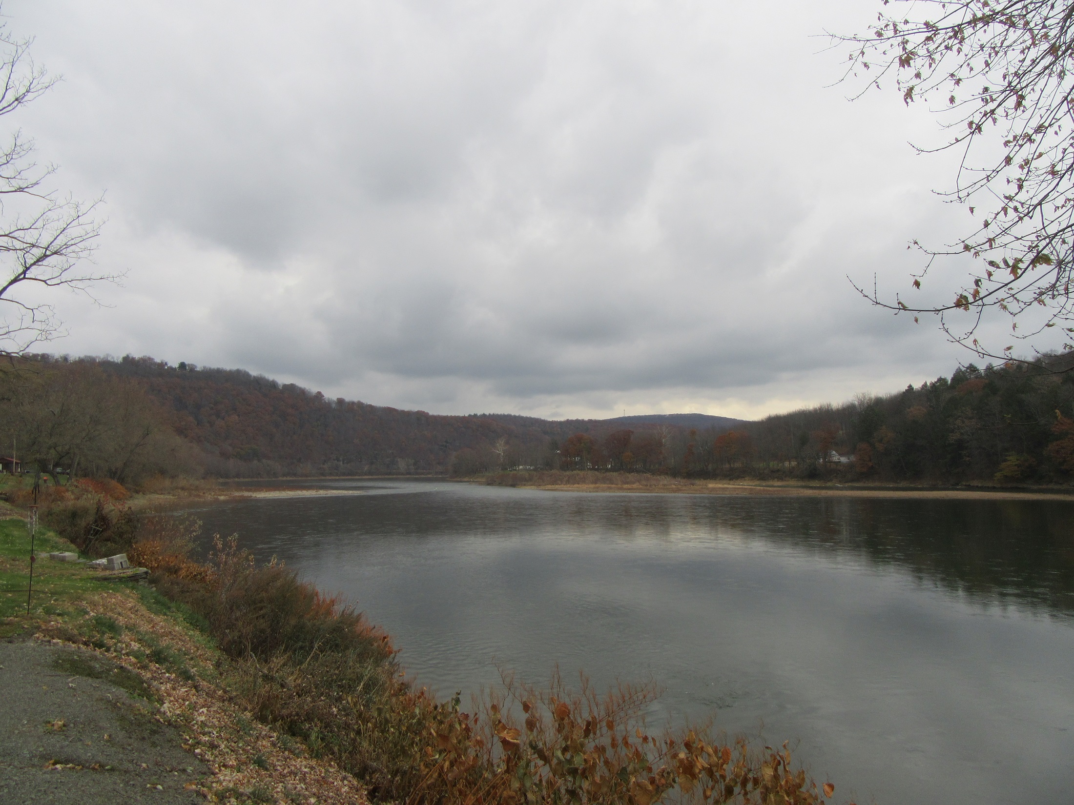 Thick clouds dominated the skies over the Susquehanna River at Vosburg Neck in Wyoming County on Tuesday. Similar conditions persist today, along with intermittent rain showers.