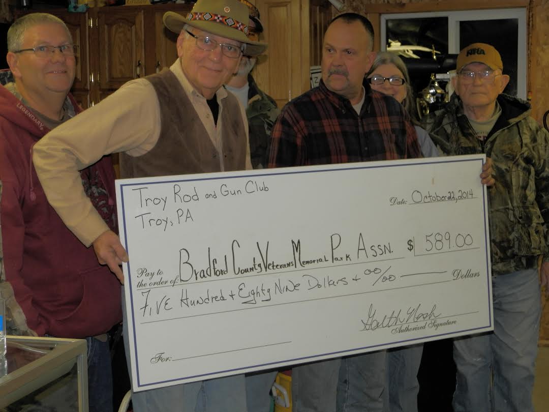 Troy Rod & Gun Club members met with representatives of the Bradford County Memorial Park Association (BCMPA) on Oct. 22 to present a check for $589 that the club raised during a successful skeet shooting fundraiser on Sept. 27.