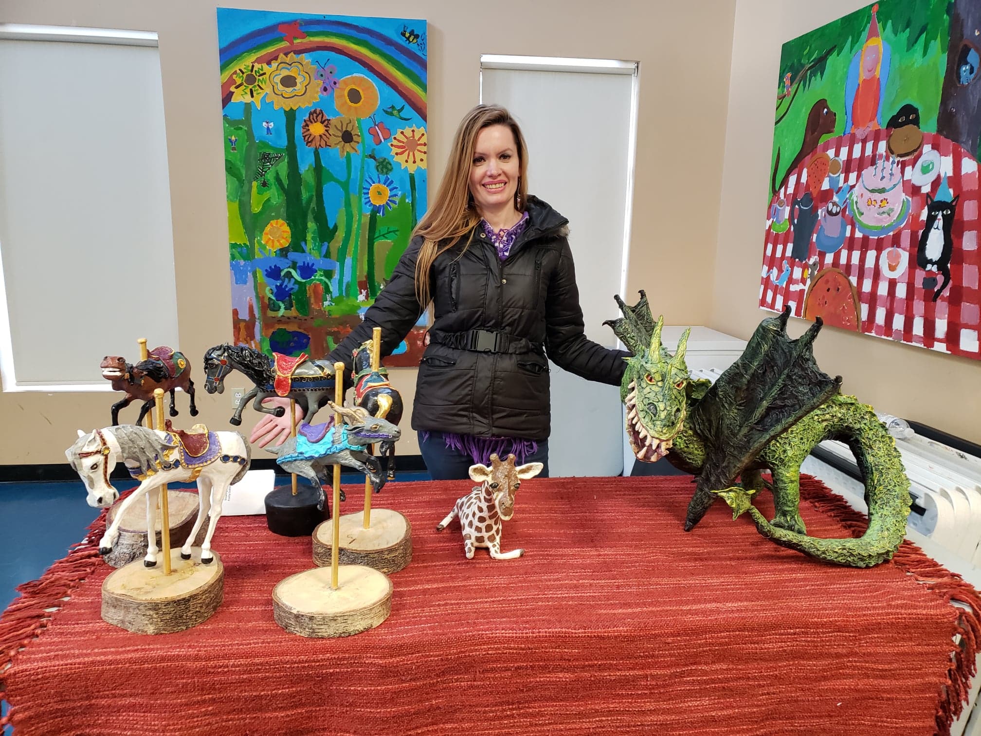 Participating artists will include sculptor Jennifer Sause Brennan (above) and wood carver Matthew Howell, who creates prize-winning tramp art boxes. Folk guitarist Jessica Illuzzi will be among the street performers.