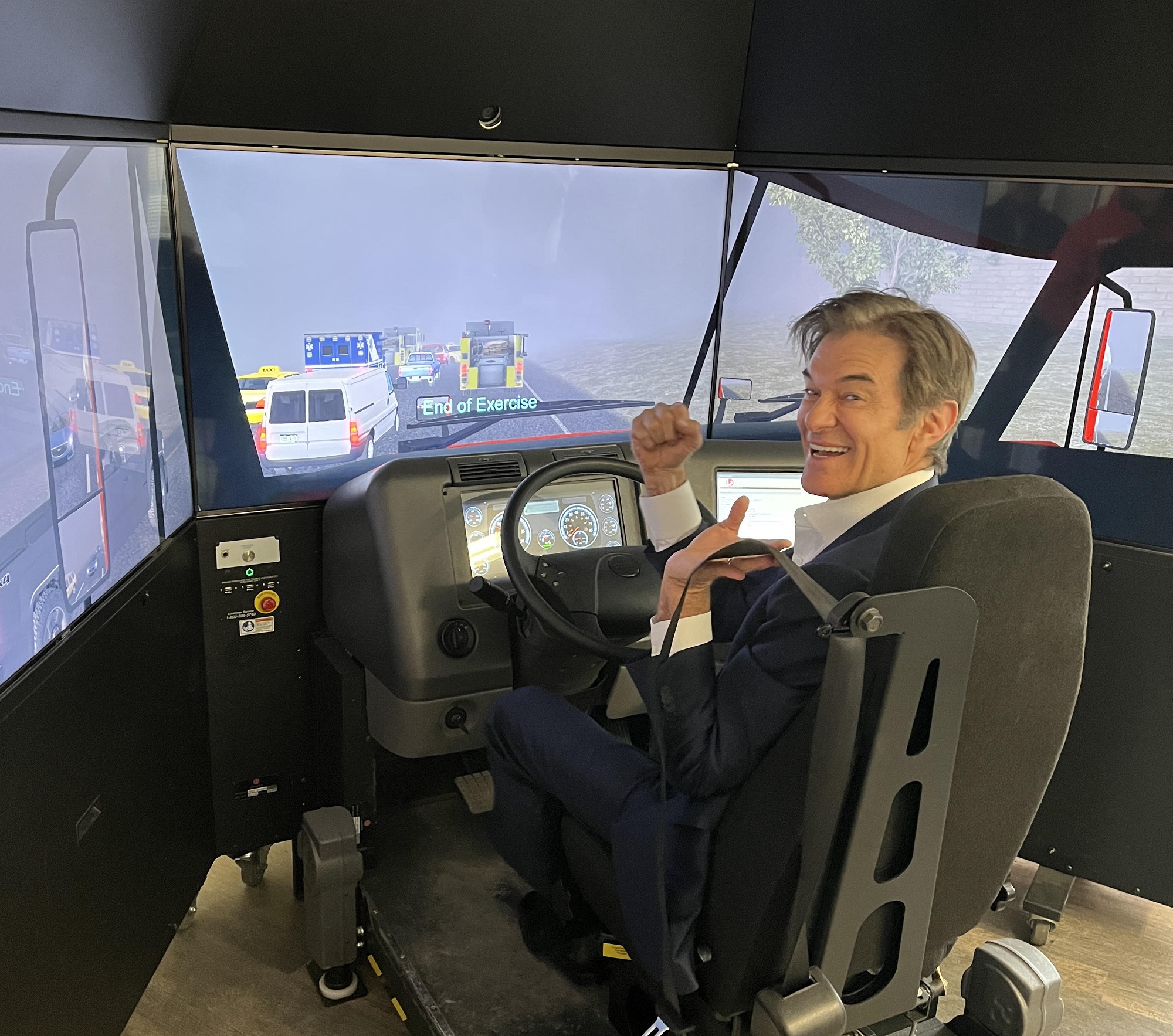 Dr. Oz completes a run on the SCCTC CDL Training Center driving simulator.