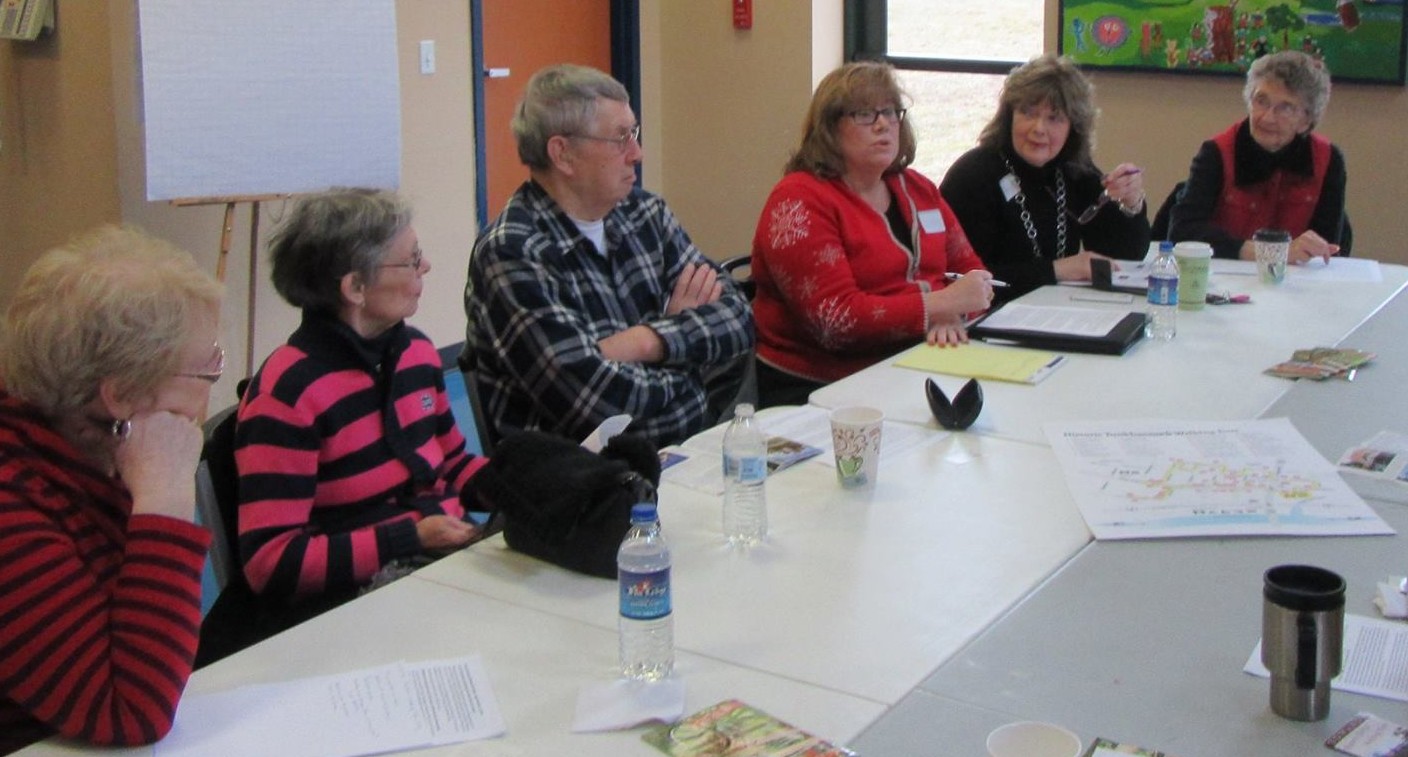 At a Feb. 25 meeting of project partners and supporters of the Historic Tunkhannock Walking Tour, a list of 40 homes, businesses and churches to be featured in a tour booklet and map were approved. Committee members (above) also agreed on dates and times for special presentations and discussed ways to engage downtown businesses with the guided tours, which will begin on Founders Day, June 25 and continue on Thursday evenings in July as weather permits.