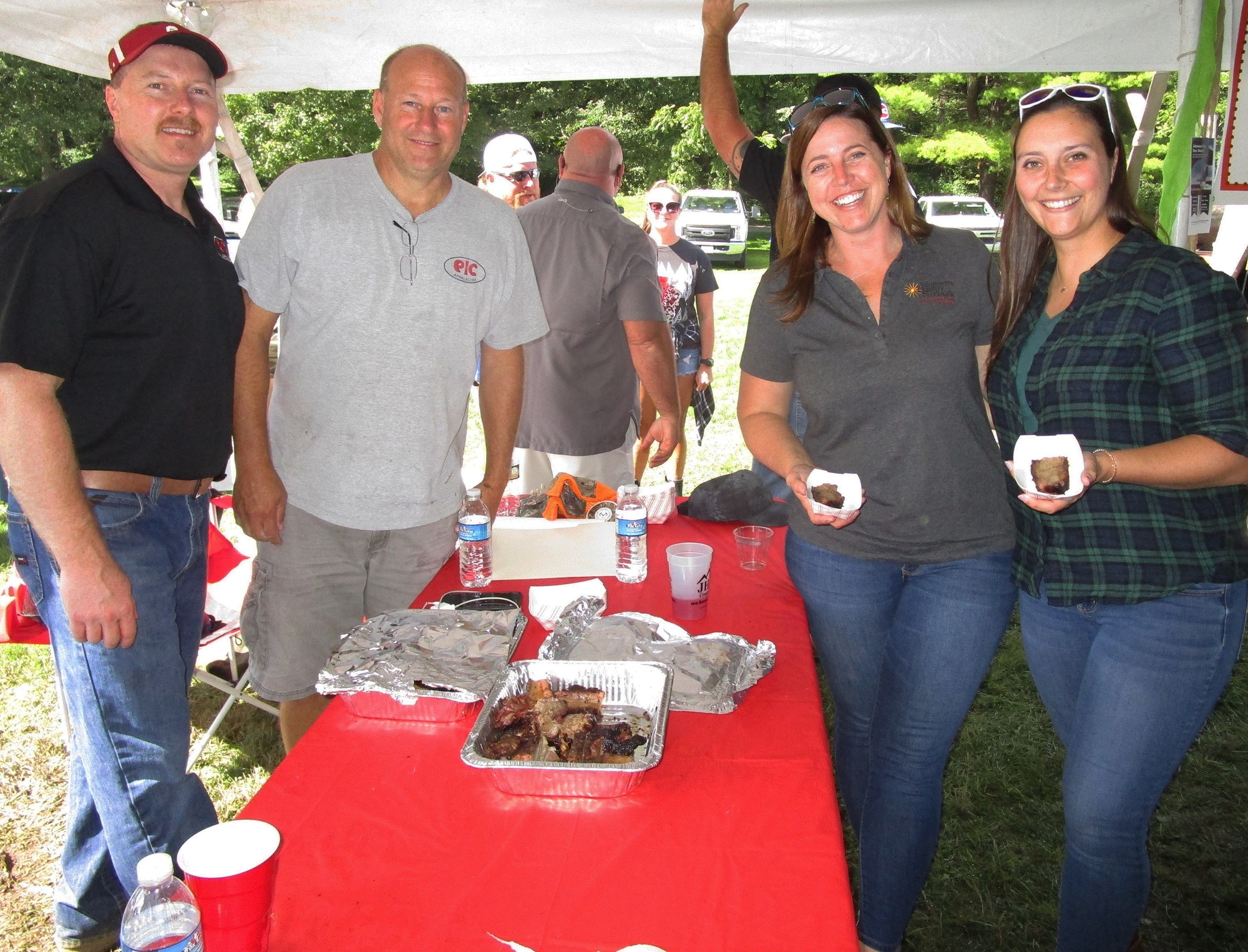 PIC Appalachia teammates (from left) David Meyers and Jim Moroz served samples of their beef brisket to Women’s Energy Network representatives Lindsey West (second from right) and Erika Allen at the annual Barbecue Cook-Off to benefit area United Way agencies coordinated by Williams in Tunkhannock on Friday.