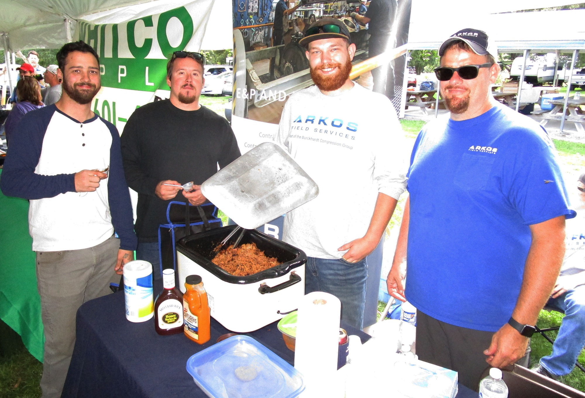 While the number of teams serving up pulled pork, pork ribs and beef brisket were down a bit from their peak in 2019 – the last time the event was held – contributions kept pace with previous years. Cooking teams arrived on Thursday evening to prepare for the cook-off, working in shifts through the night in anticipation of the arrival of the official judges and those tasting for fun and fundraising. Other vendors gave away hats and t-shirts, as well as snacks, while seizing the opportunity to talk shop with people they don’t often get to see outside of the gas fields.