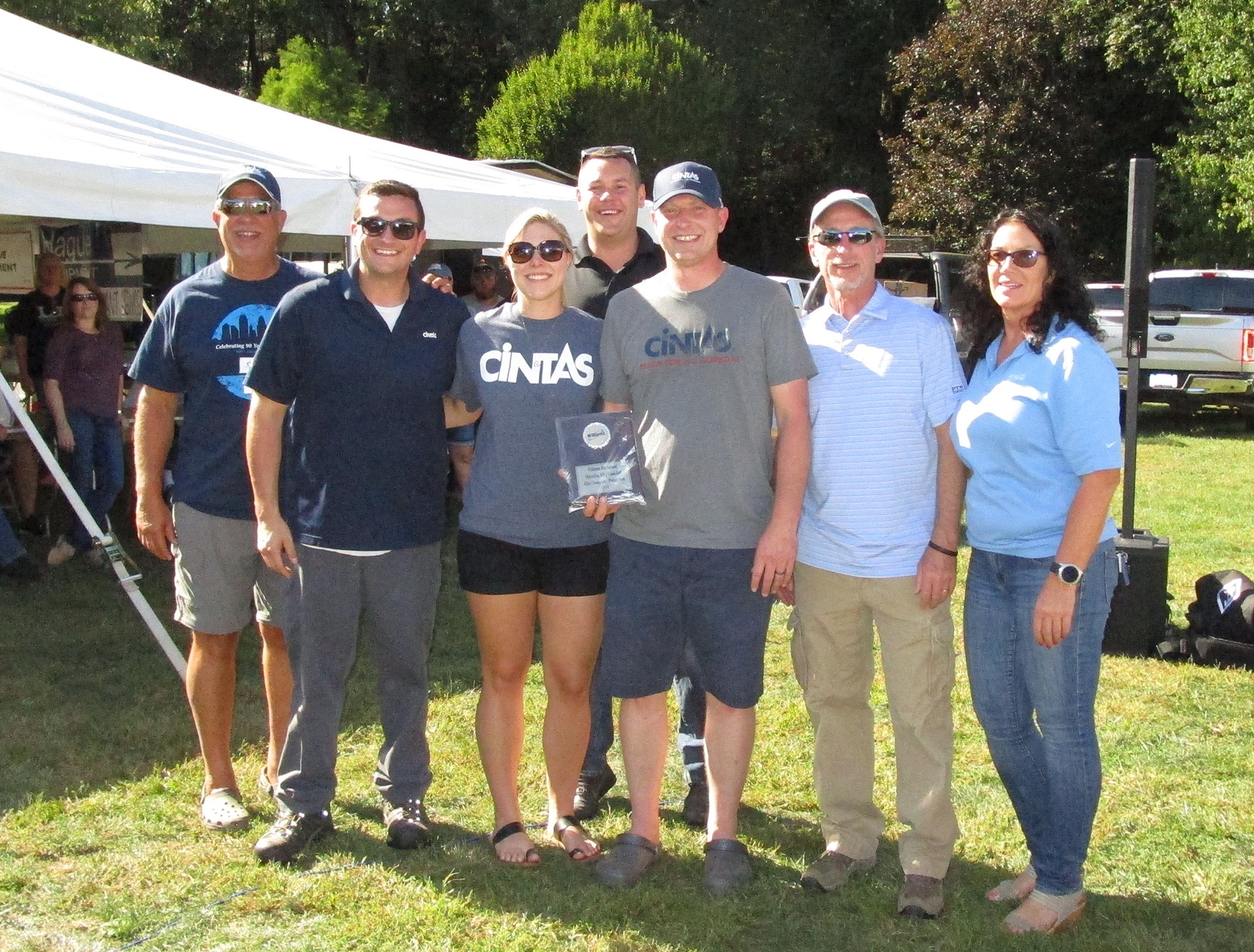 Cintas winners – Bob Wisniewski, Steve Furmanski, Janel Wisniewski, Dan Swortz (back) and Steve Leslie.