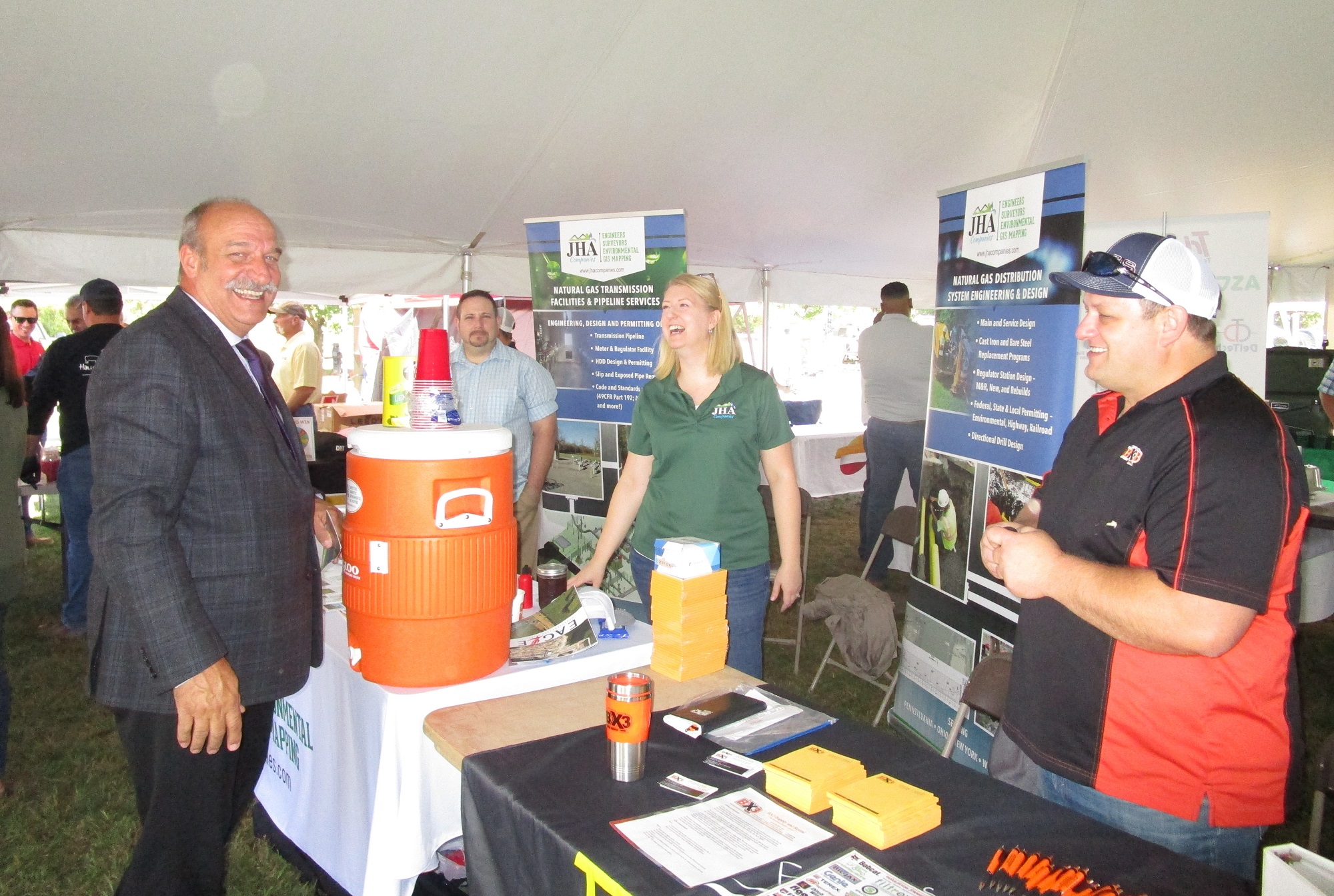 Susquehanna County commissioner Alan Hall chats with Jeremy May and Ruth TenHoeve of JHA and John Sprout of BX3 Rental.