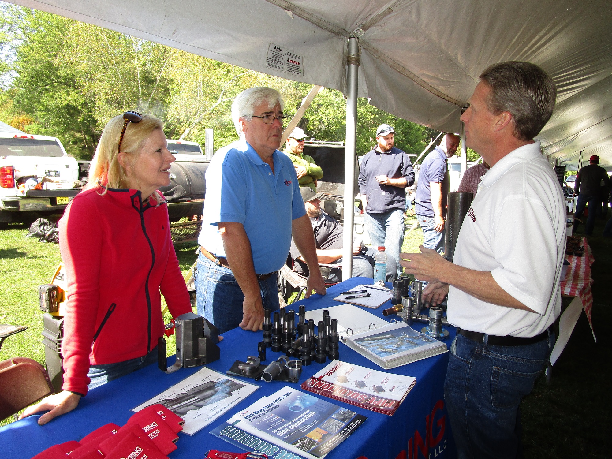 Cecilia and Frank Keenen of LOK Ring discuss valve applications with Jeff Castleman of Tri-State Technical Sales Corp.