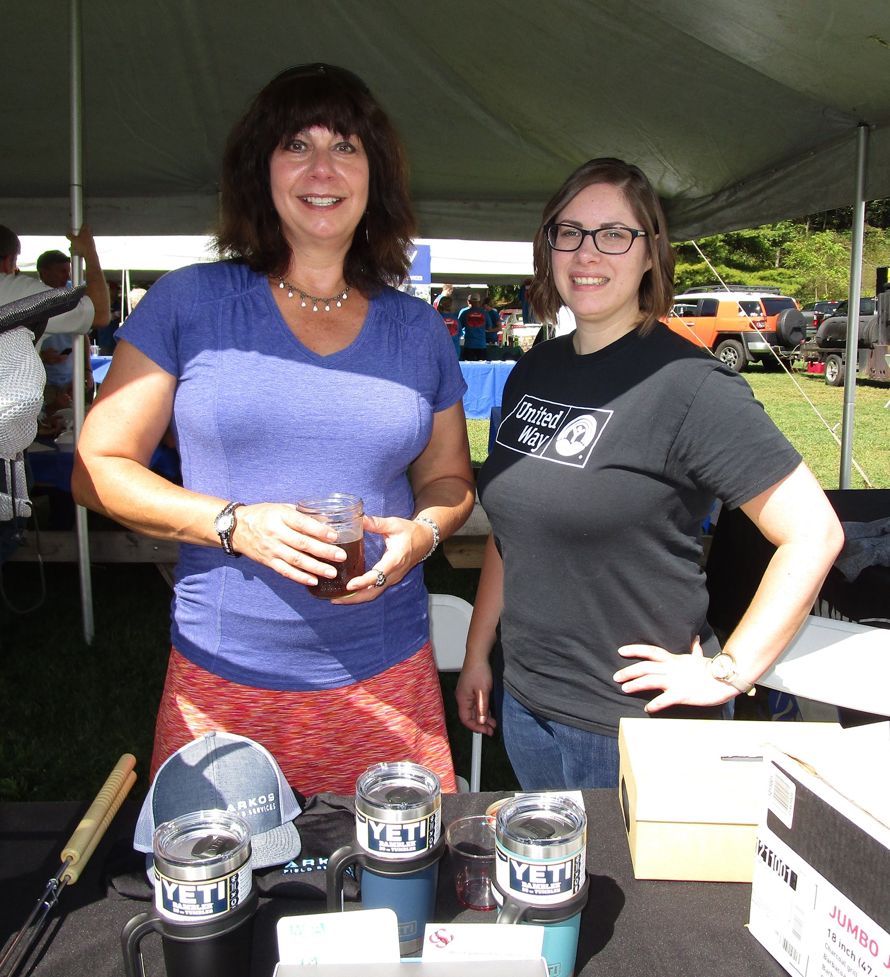 United Way of Susquehanna County representatives Robin Cobb (left) and Kim Merithew sell raffle tickets for donated prizes.
