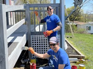 Josh Owens (foreground) and John Pittenger put a fresh coat of paint on ramps at Hunts for Healing.